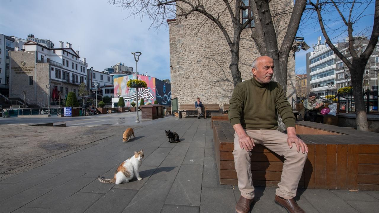 Tarihi caminin avlusunu çevreleyen duvar üzerine dizdiği kitapların yanına "Kediler İçin Yardım Kutusu" yazılı kutu koyan 60 yaşındaki Gürsoy, esnaf ve cami cemaatinden topladığı paralarla sahipsiz kediler için yiyecek alıyor.