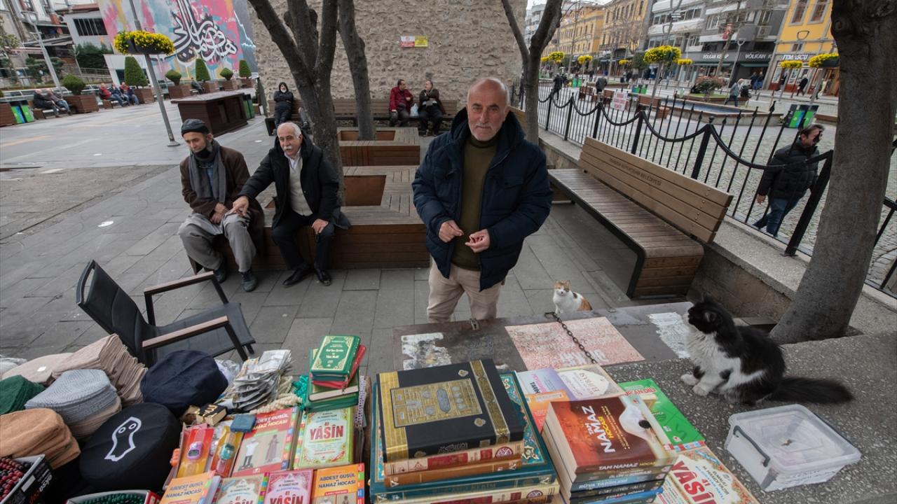 Dört çocuk, bir torun sahibi İsmail Gürsoy, AA muhabirine, "Kitapçı İsmail" olarak tanındığını belirterek, "40 yıldır bu taşın üzerinde kitap satıyorum. Baba mesleğidir. Daha evvel babam yapmıştı. 60 yıldır bu caminin avlusundayız. Sırf benimle geçen zaman 40 yıl." dedi.