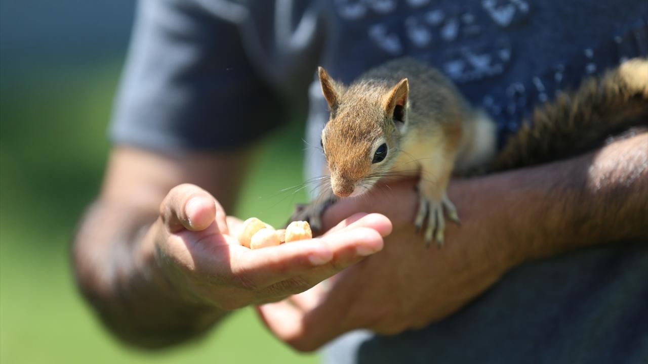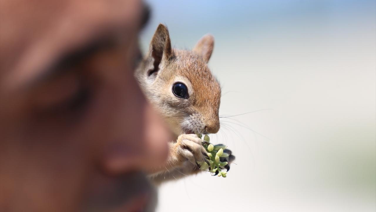 Kışla, yaklaşık bir yıldır "Fındık" adını verdiği sincapla adeta çocuk gibi ilgileniyor.