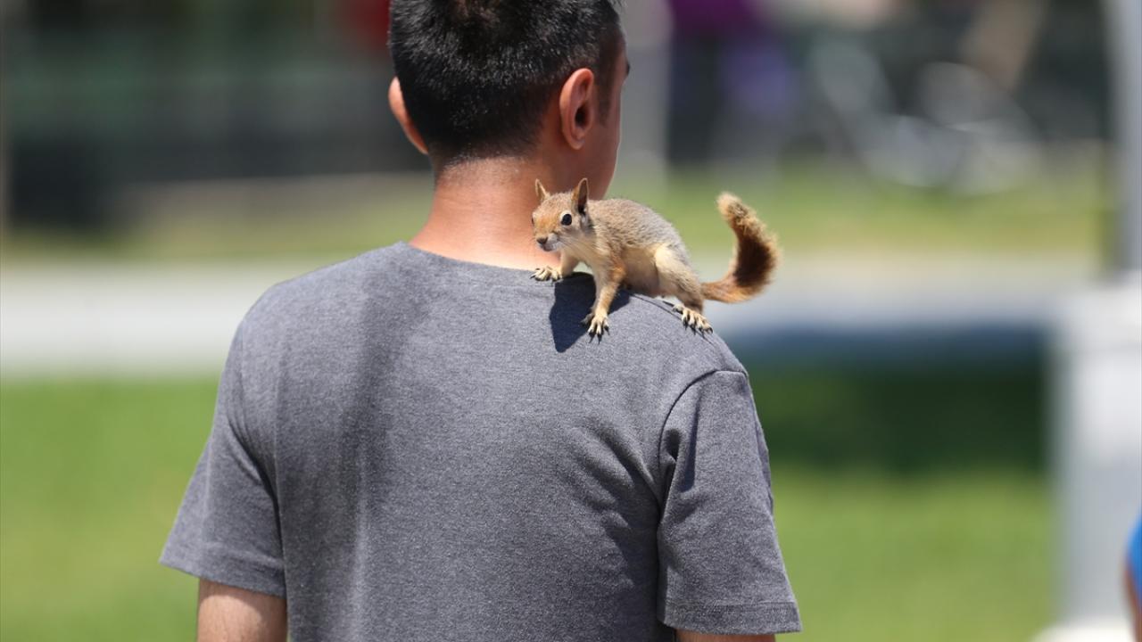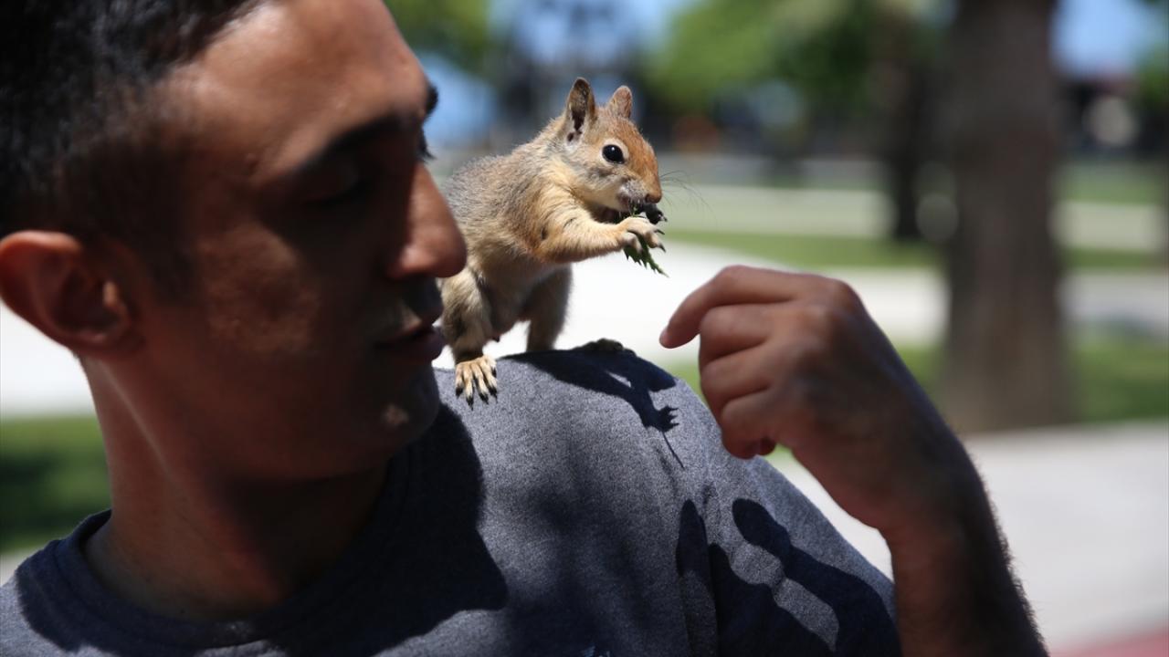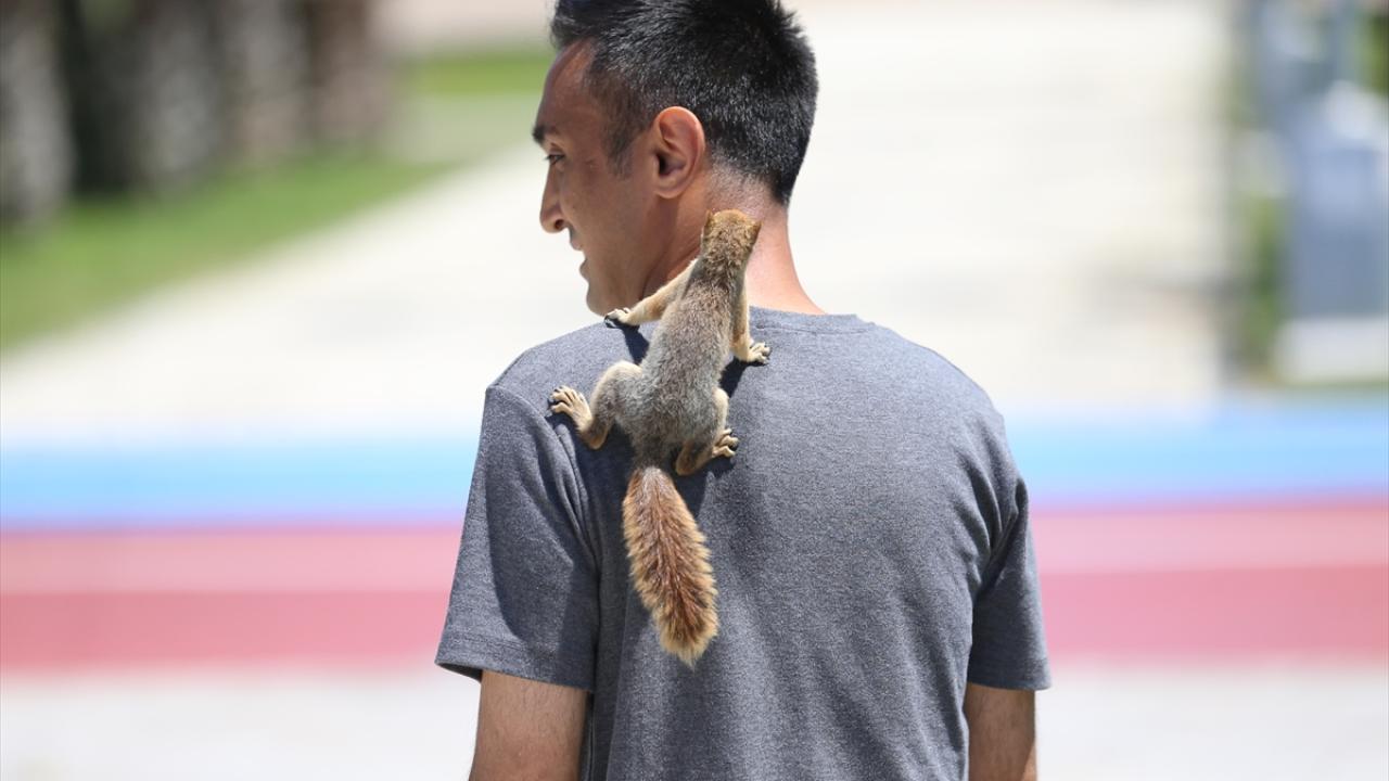Zaman zaman sokaklarda omzunda gezdirdiği sincaba özellikle çocukların ilgi gösterdiğini belirten Kışla, hayvana çok alıştığını söyledi.
