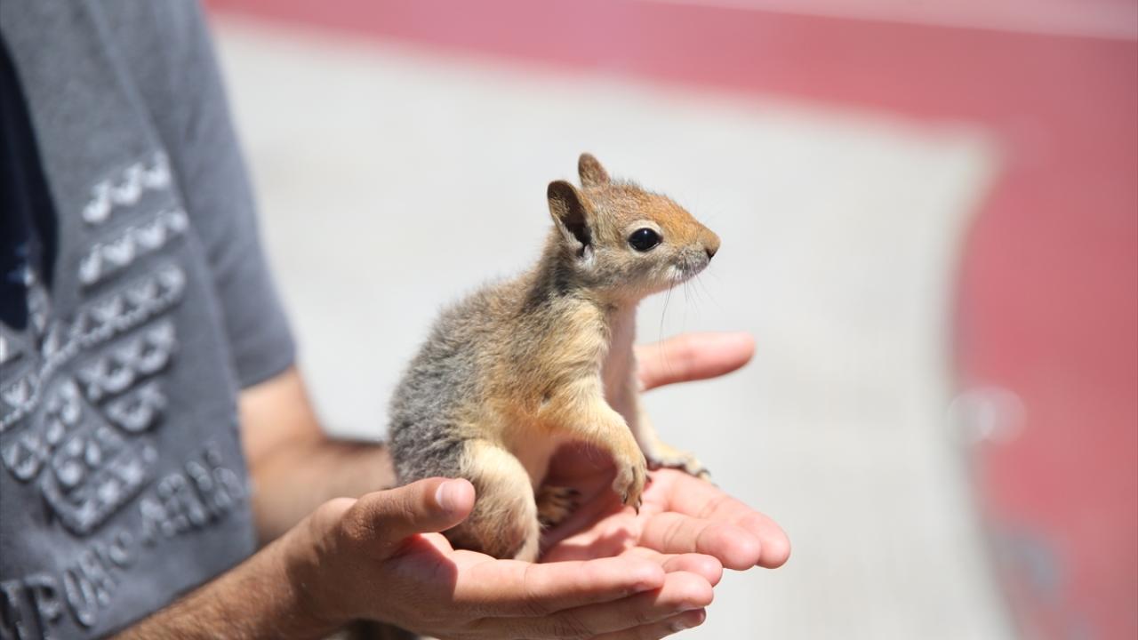 Kışla, Ulubey ilçesindeki fındık bahçesinde çalıştığı sırada yerde hareketsiz halde yavru sincap gördü.
