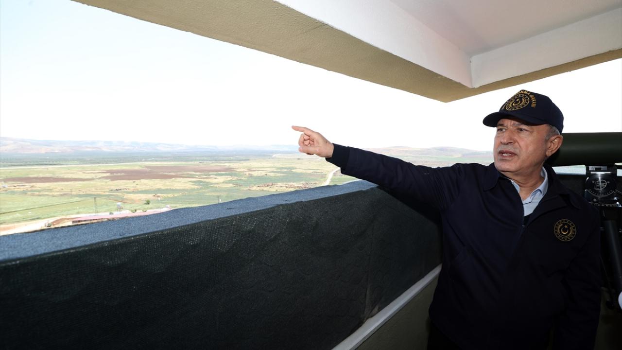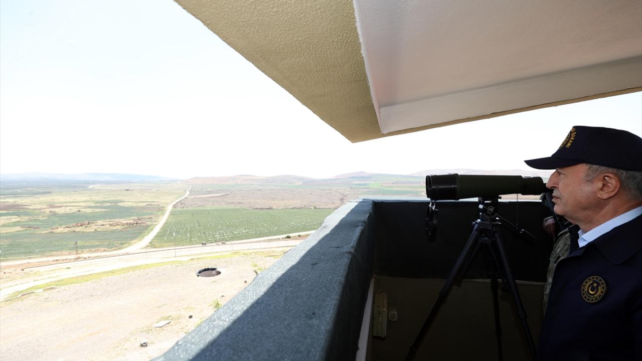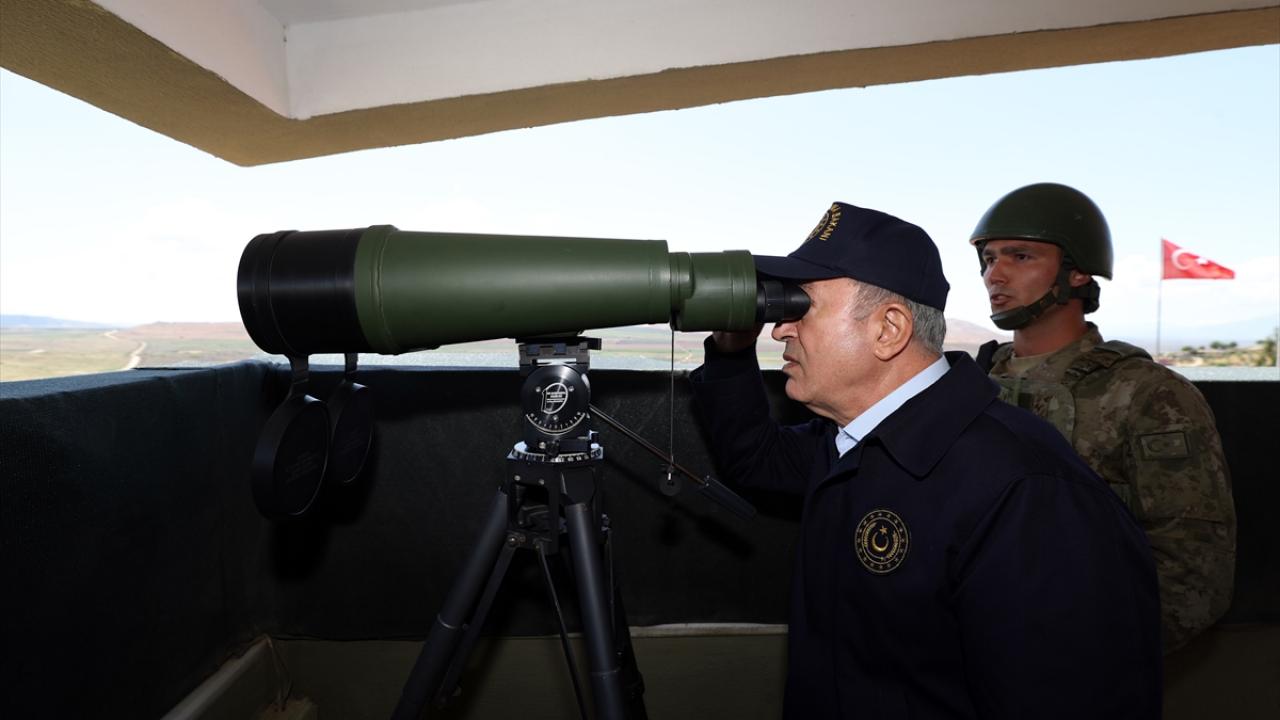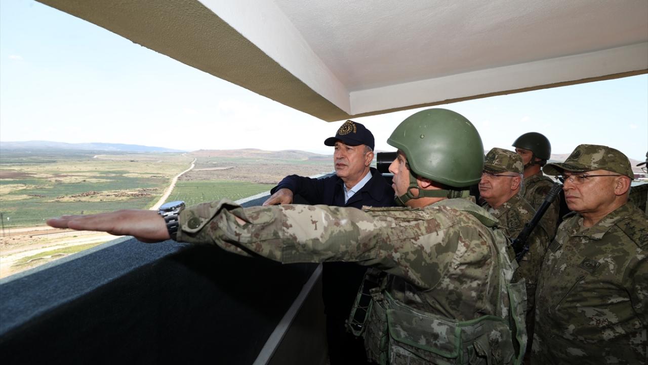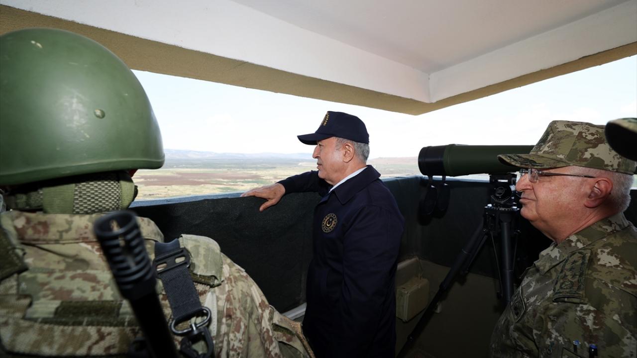 Hudut Karakol Komutanı’na Türk bayrağını öperek emanet eden Akar daha sonra alınan tedbirlere ilişkin brifing aldı, gözetleme kulesine çıkarak hududu inceledi.