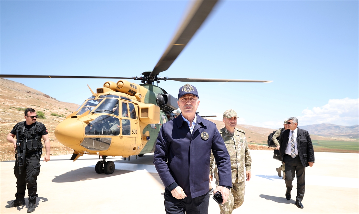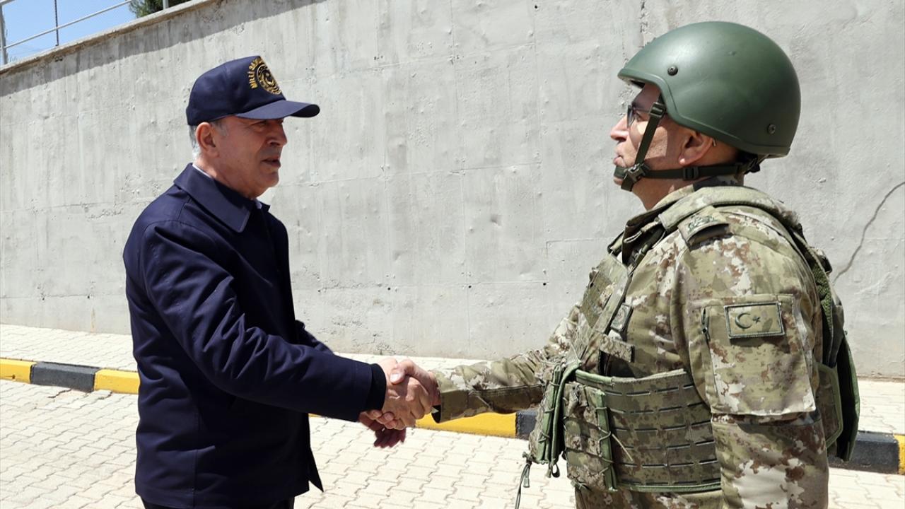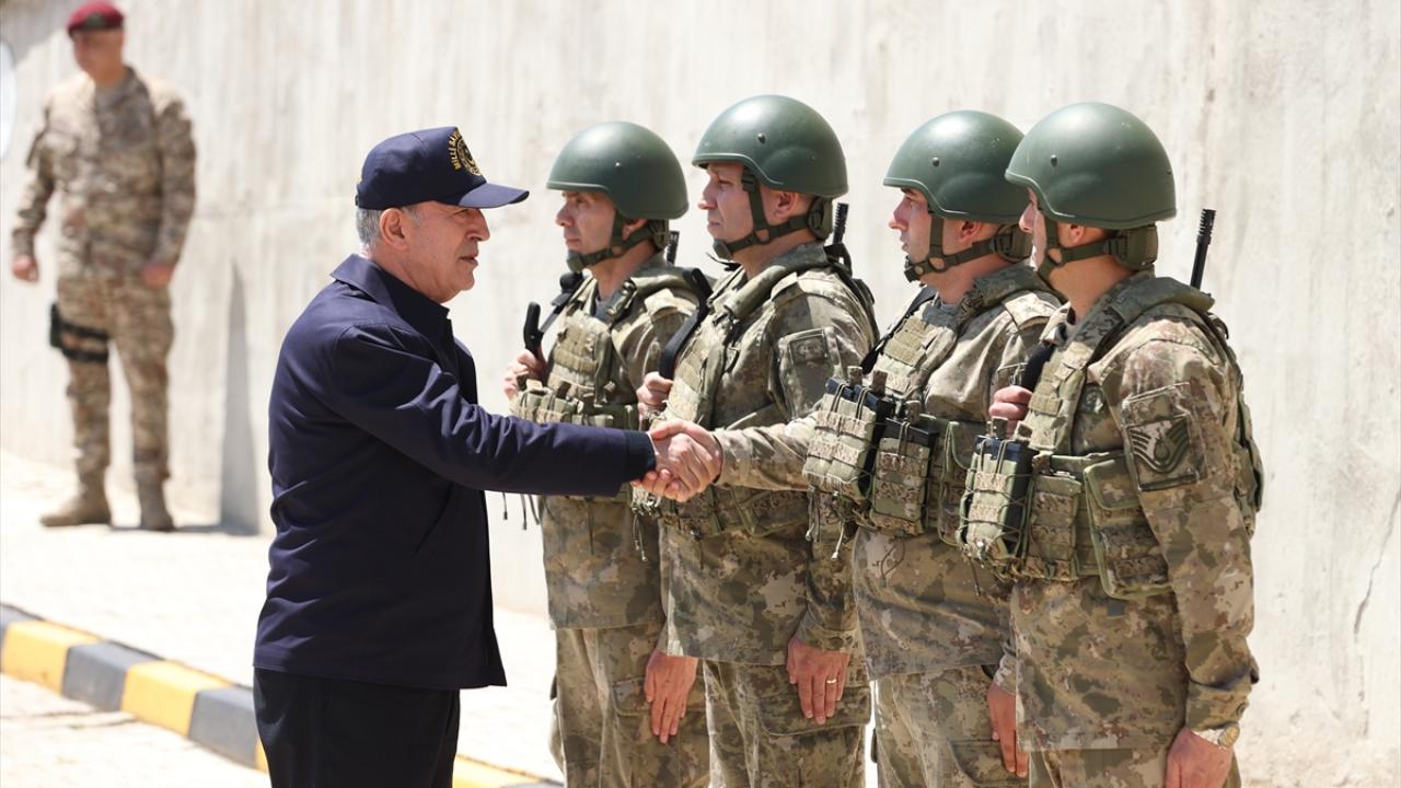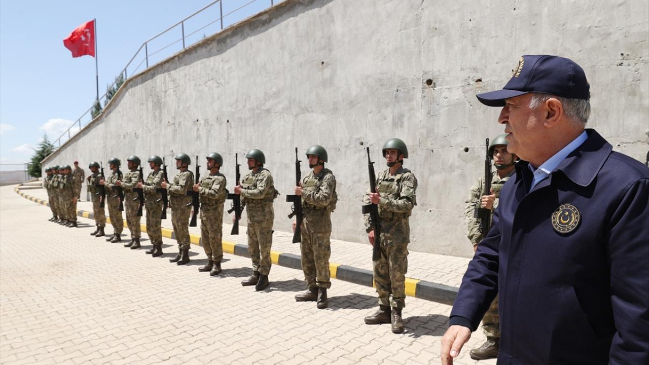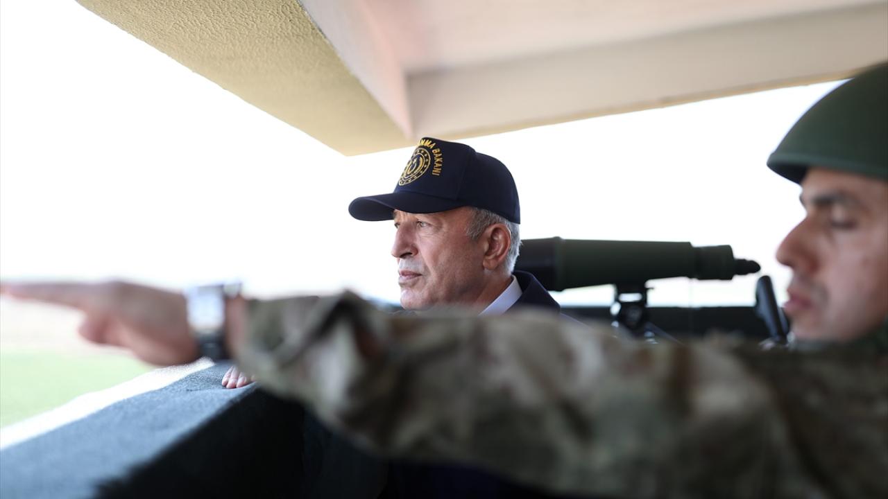 Hudut Karakol Komutanı’na Türk bayrağını öperek emanet eden Akar daha sonra alınan tedbirlere ilişkin brifing aldı, gözetleme kulesine çıkarak hududu inceledi.