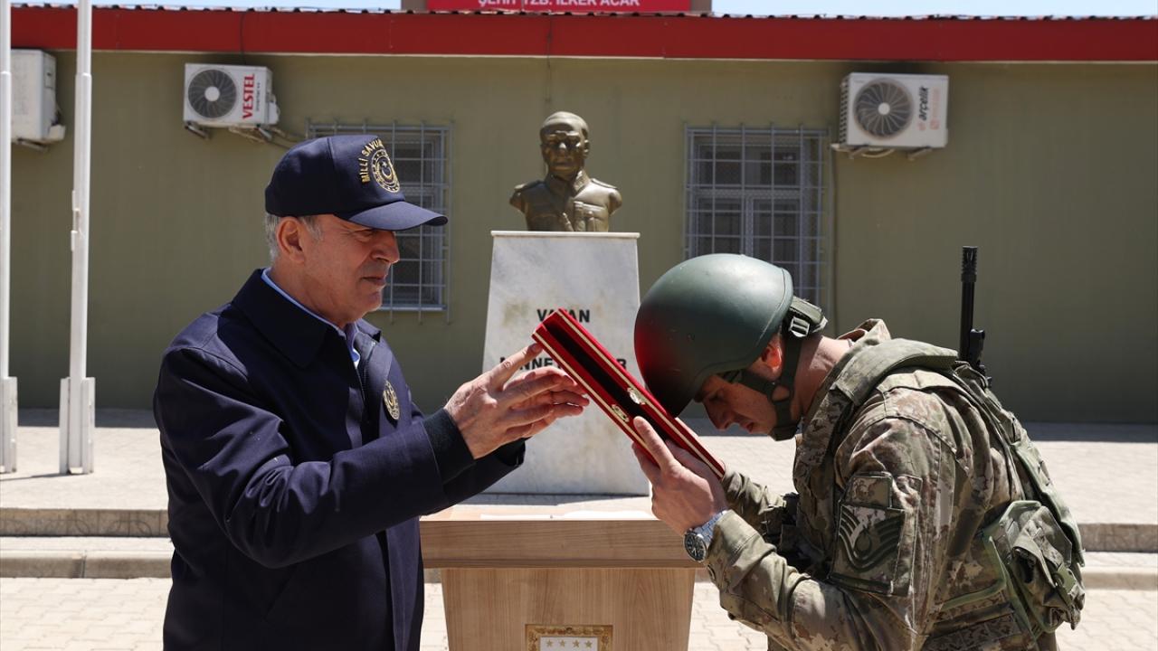 Şehit Yüzbaşı İlker Acar Hudut Karakolu’na gelen Akar, 39. Mekanize Piyade Tugay Komutanı Tuğgeneral Hakan Tutucu’dan hudut tekmili aldı.
