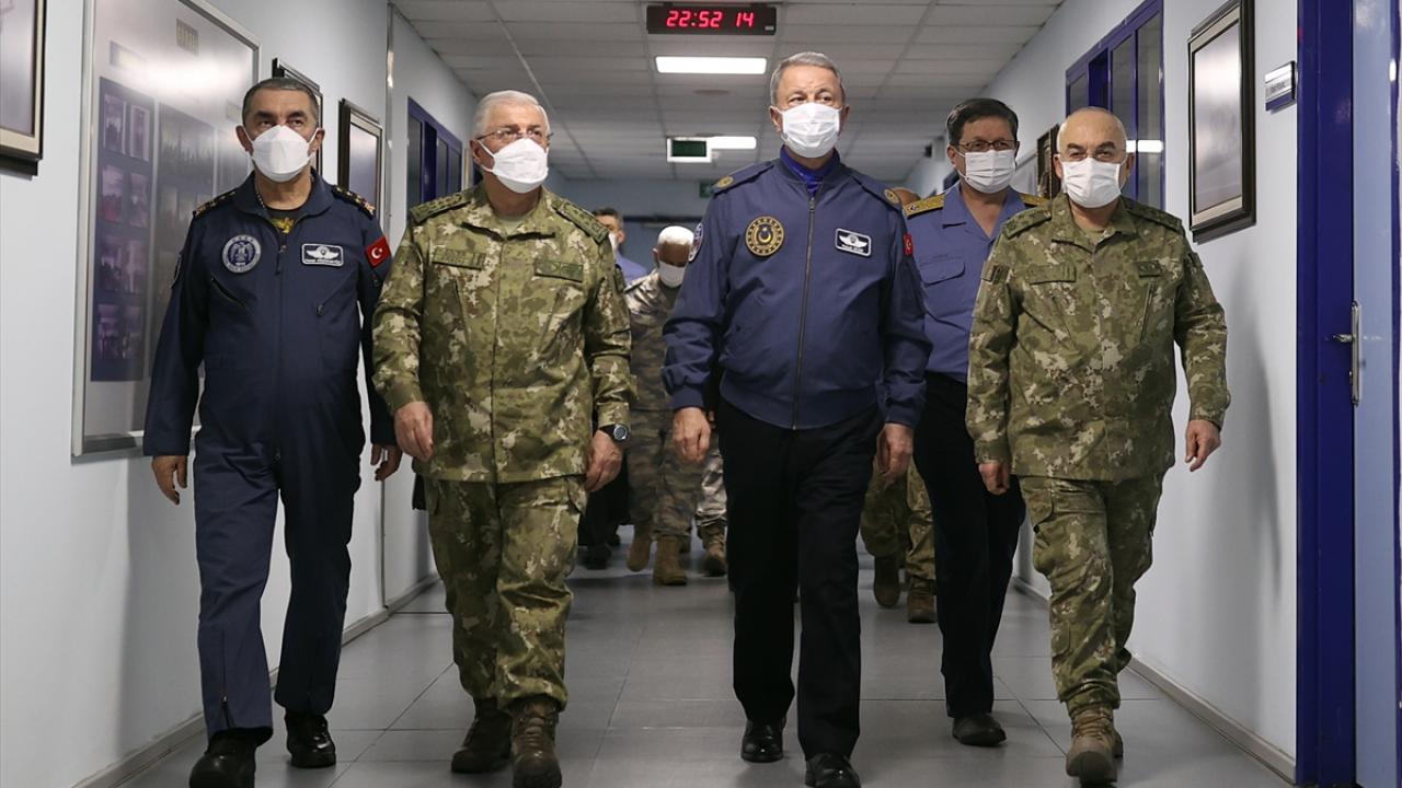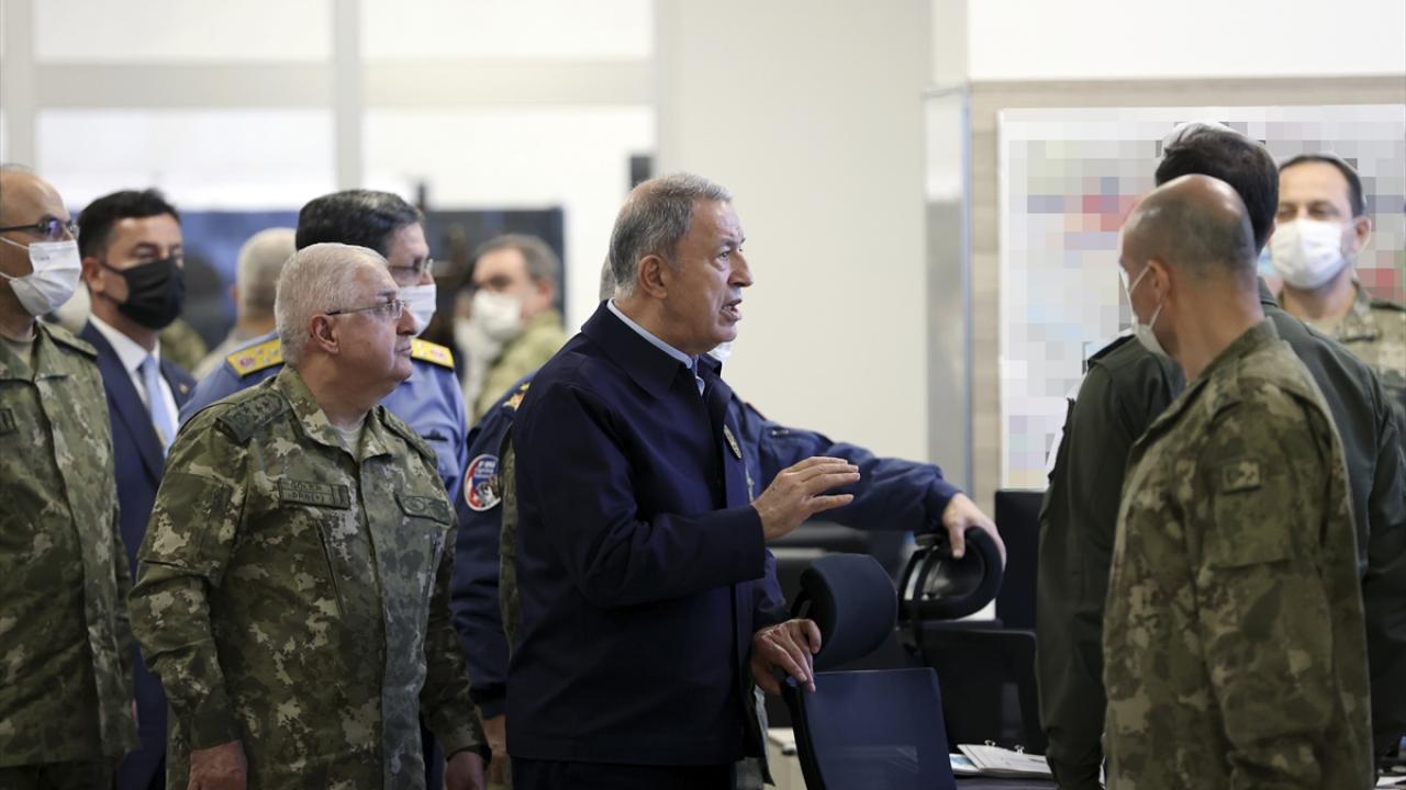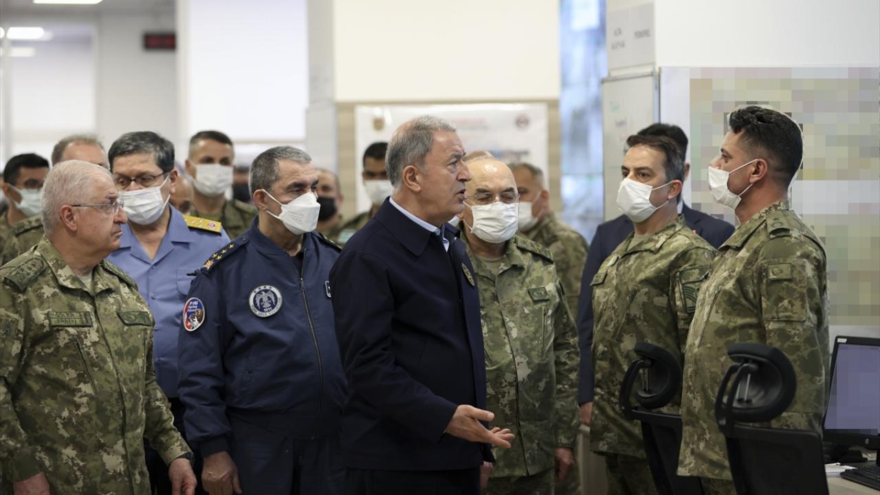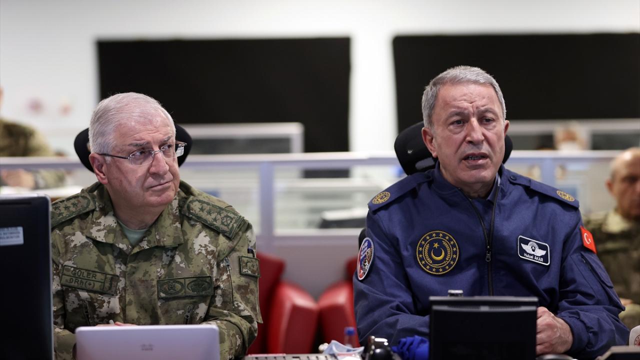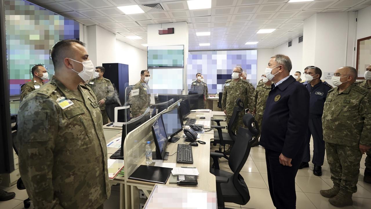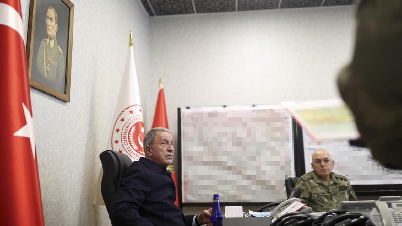 Bakan Akar, beraberindeki TSK komuta kademesi ile sabahın ilk ışıklarına kadar Harekat Merkezi`nde Pençe Kilit Operasyonu`nu takip etti.