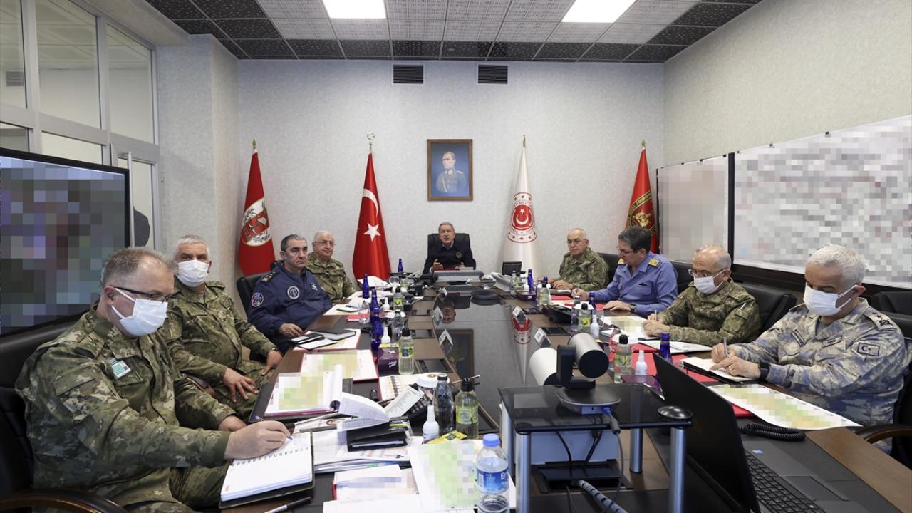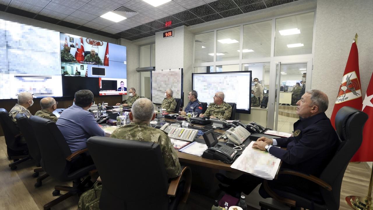 Harekat Merkezi’nde Pençe Kilit Operasyonu kapsamında gerçekleştirilen hava hücum harekatını takip eden Akar, sahadaki son duruma ilişkin bilgi aldı, harekata katılan birliklerin komutanları ile video konferans toplantısı gerçekleştirdi.