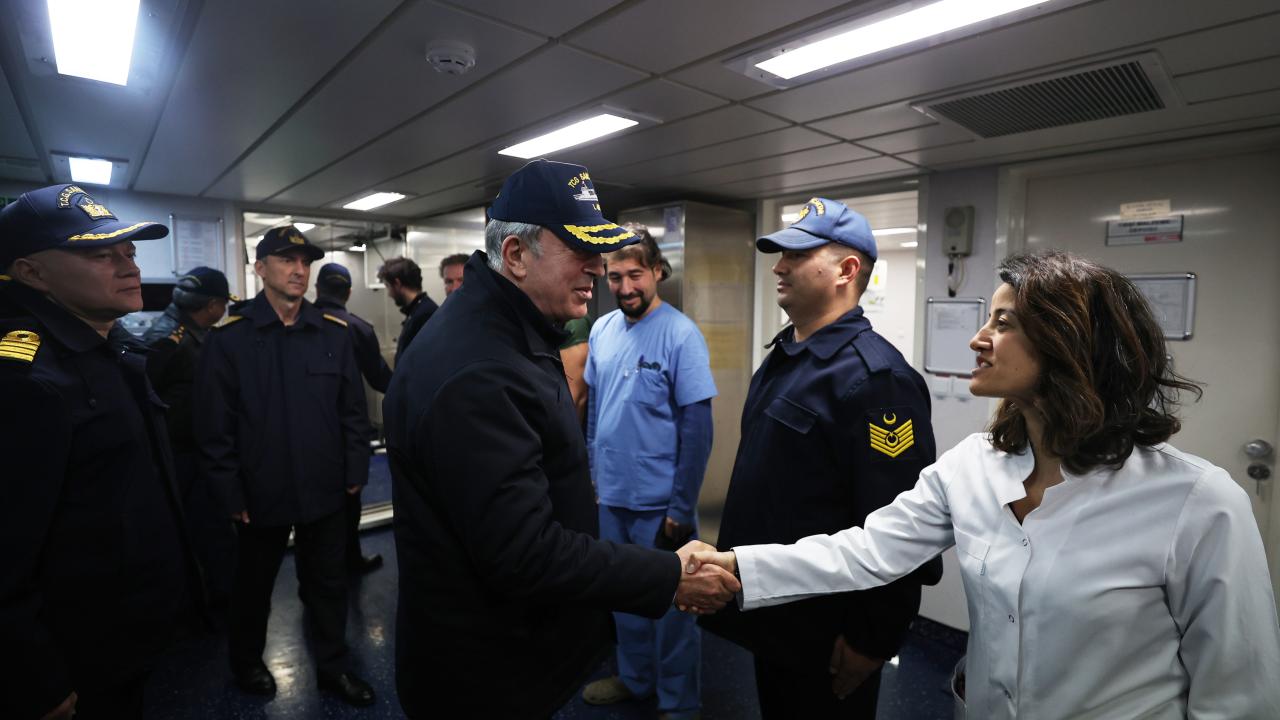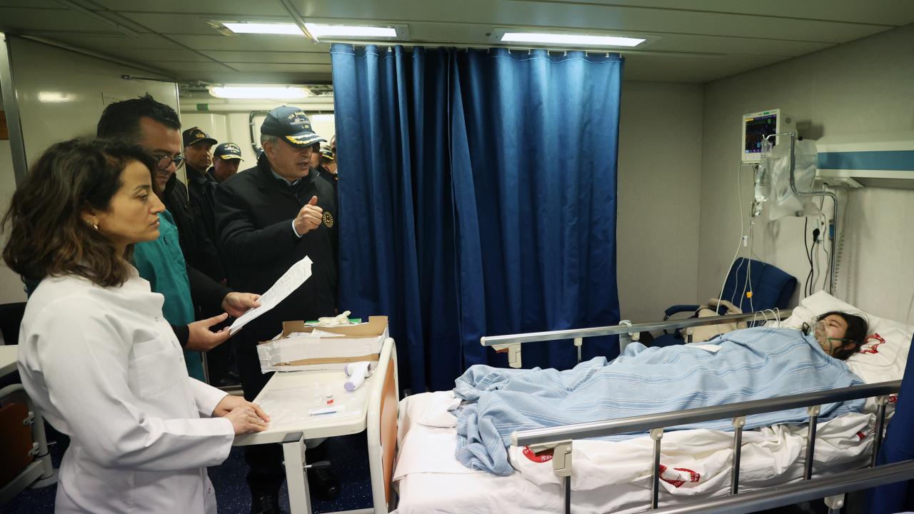 Milli Savunma Bakanı Akar da beraberinde Genelkurmay Başkanı Orgeneral Yaşar Güler, Deniz Kuvvetleri Komutanı Oramiral Ercüment Tatlıoğlu ve Hava Kuvvetleri Komutanı Orgeneral Atilla Gülan ile hastanede olarak hizmet veren gemide incelemelerde bulundu, tedavi gören vatandaşları ziyaret etti.