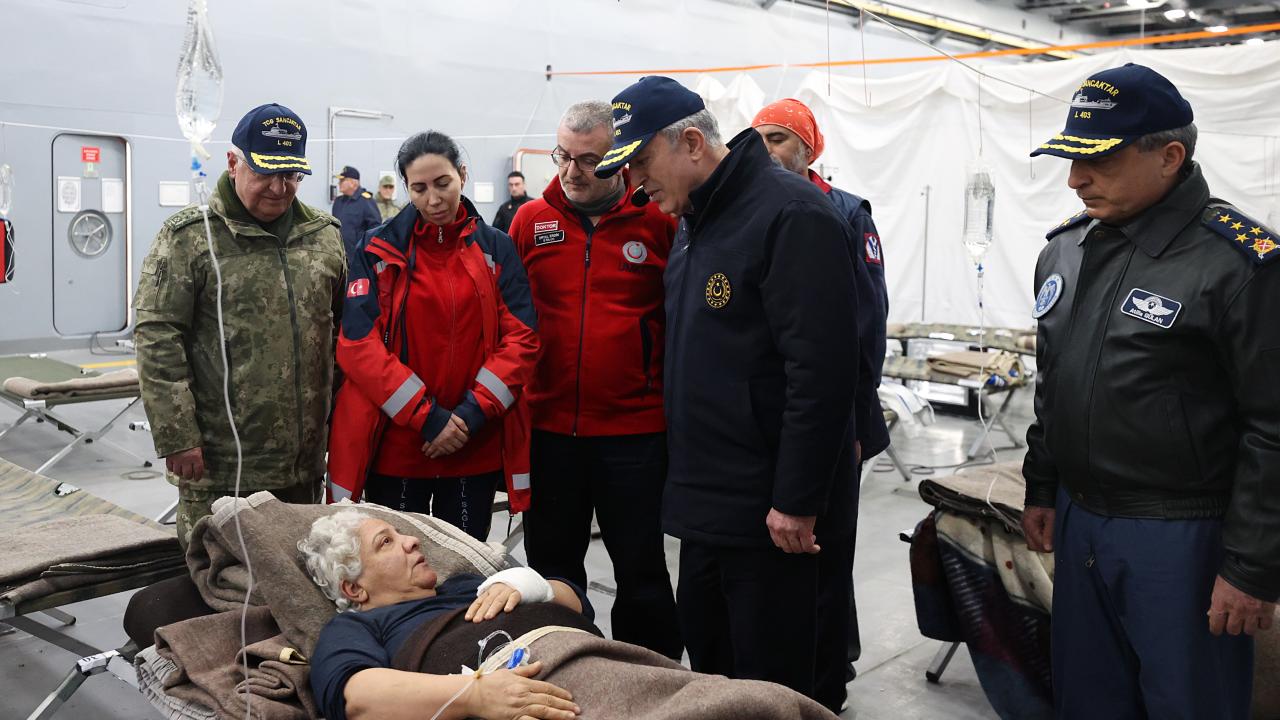 Milli Savunma Bakanı Hulusi Akar, beraberindeki Türk Silahlı Kuvvetleri (TSK) komuta kademesi ile depremde yaralananlar için hastane hizmeti vermeye başlayan Deniz Kuvvetleri Komutanlığının TCG Sancaktar gemisinde incelemelerde bulundu. Bakan Akar, tedavi gören vatandaşları ziyaret etti.