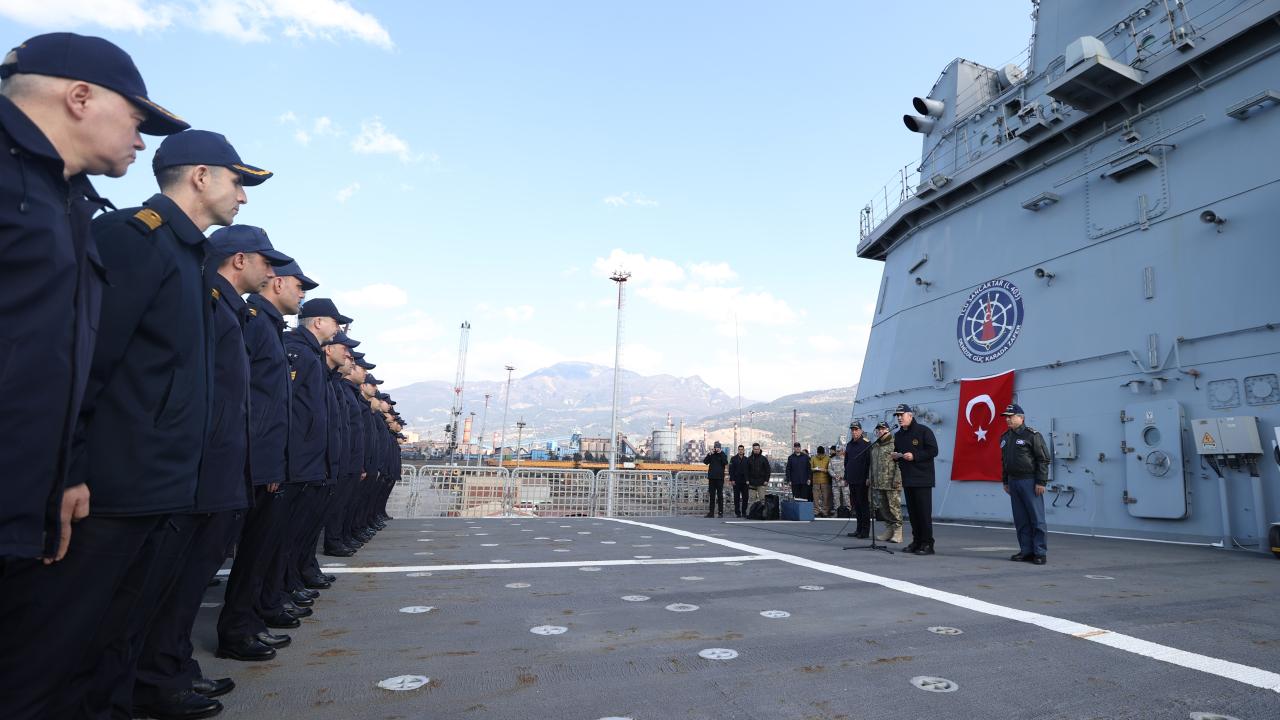 İzmir Foça’dan iş makinelerini İskenderun’a taşıdıktan sonra bölgede kalan Türk Silahlı Kuvvetlerinin en büyük çıkarma gemileri TCG Bayraktar ve TCG Sancaktar, sağlık hizmeti vermeyi sürdürüyor.