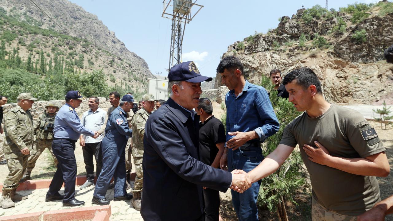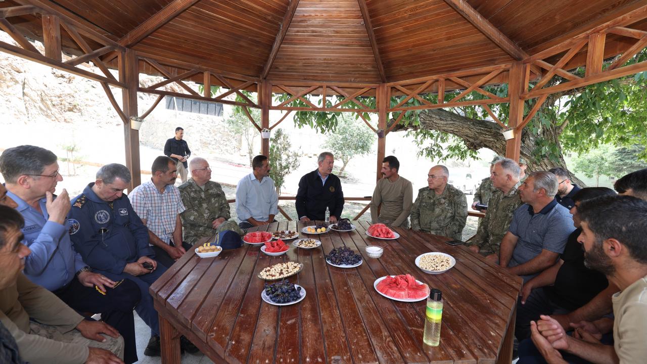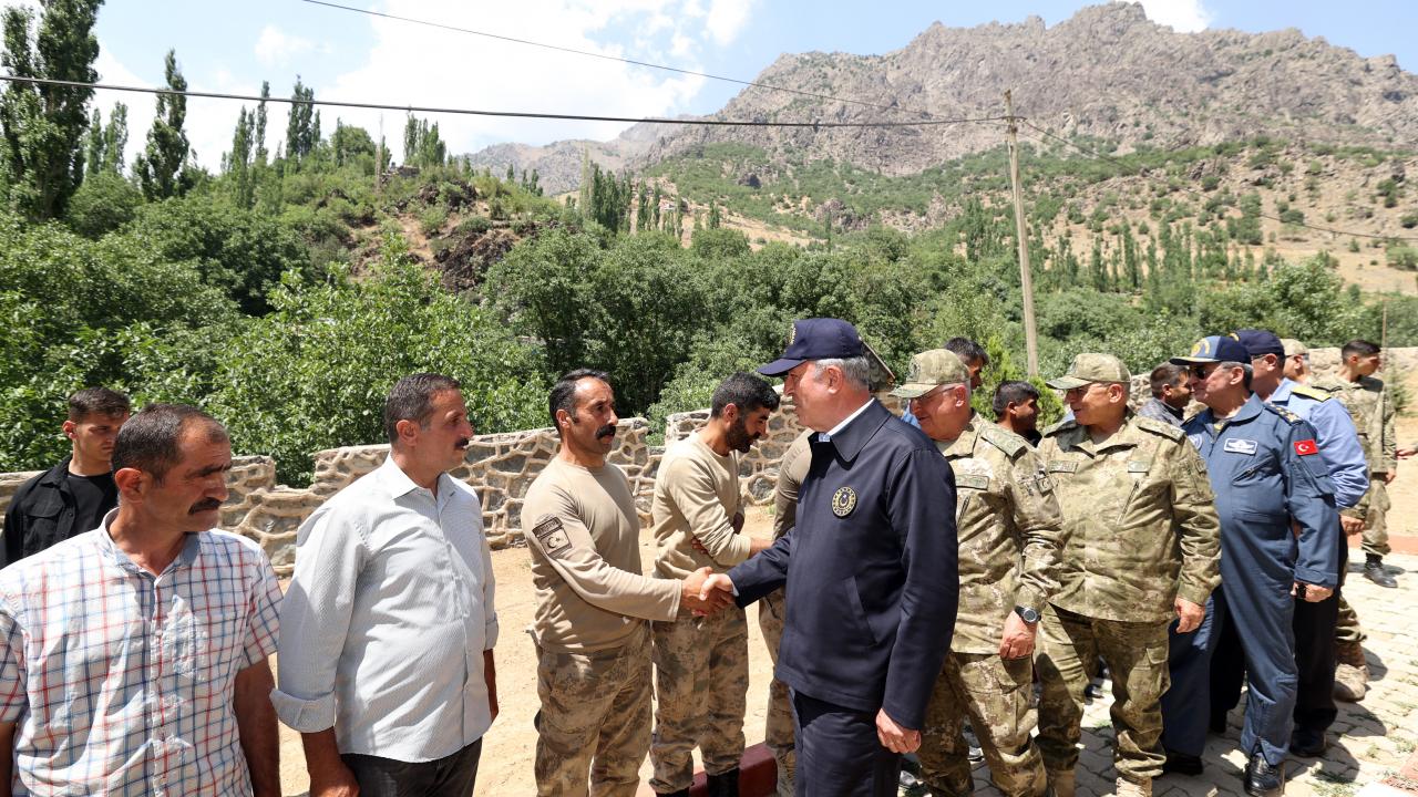 Dağlıca`daki Şehit Piyade Kurmay Yarbay İlker Çelikcan Hudut Tabur Merkezi`nde, Irak ve Suriye sınır hattı ile sınır ötesinde görevli birliklerin komutanları ile video konferans toplantısı yapan Akar, daha sonra kara yoluyla Yeşiltaş`taki 1. Motorlu Piyade Tabur Komutanlığına geçti.