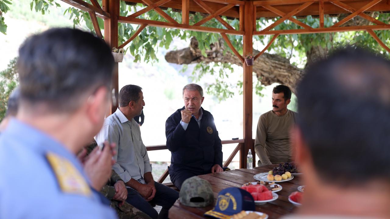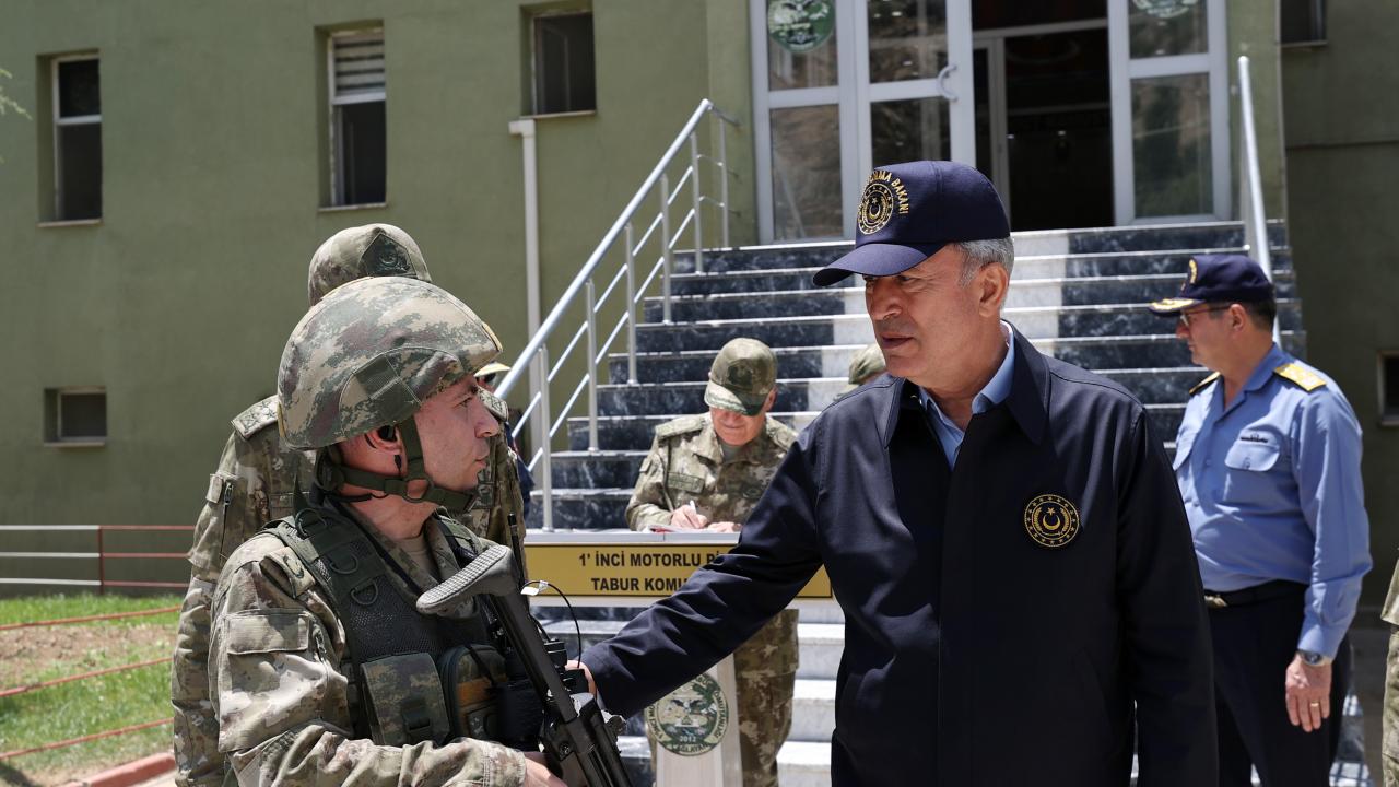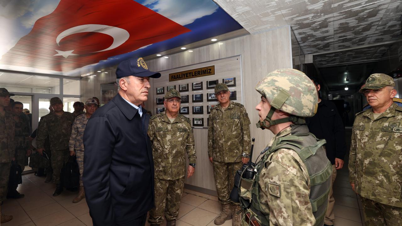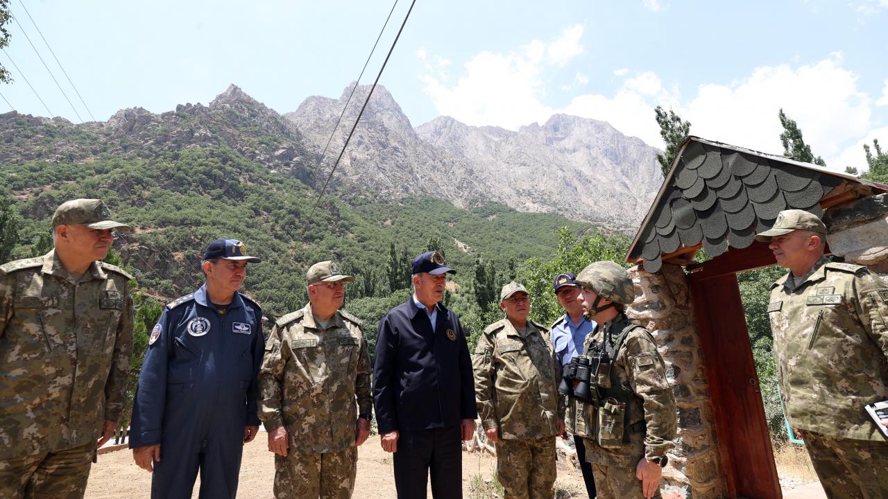 Dağlıca`daki Şehit Piyade Kurmay Yarbay İlker Çelikcan Hudut Tabur Merkezi`nde, Irak ve Suriye sınır hattı ile sınır ötesinde görevli birliklerin komutanları ile video konferans toplantısı yapan Akar, daha sonra kara yoluyla Yeşiltaş`taki 1. Motorlu Piyade Tabur Komutanlığına geçti.
