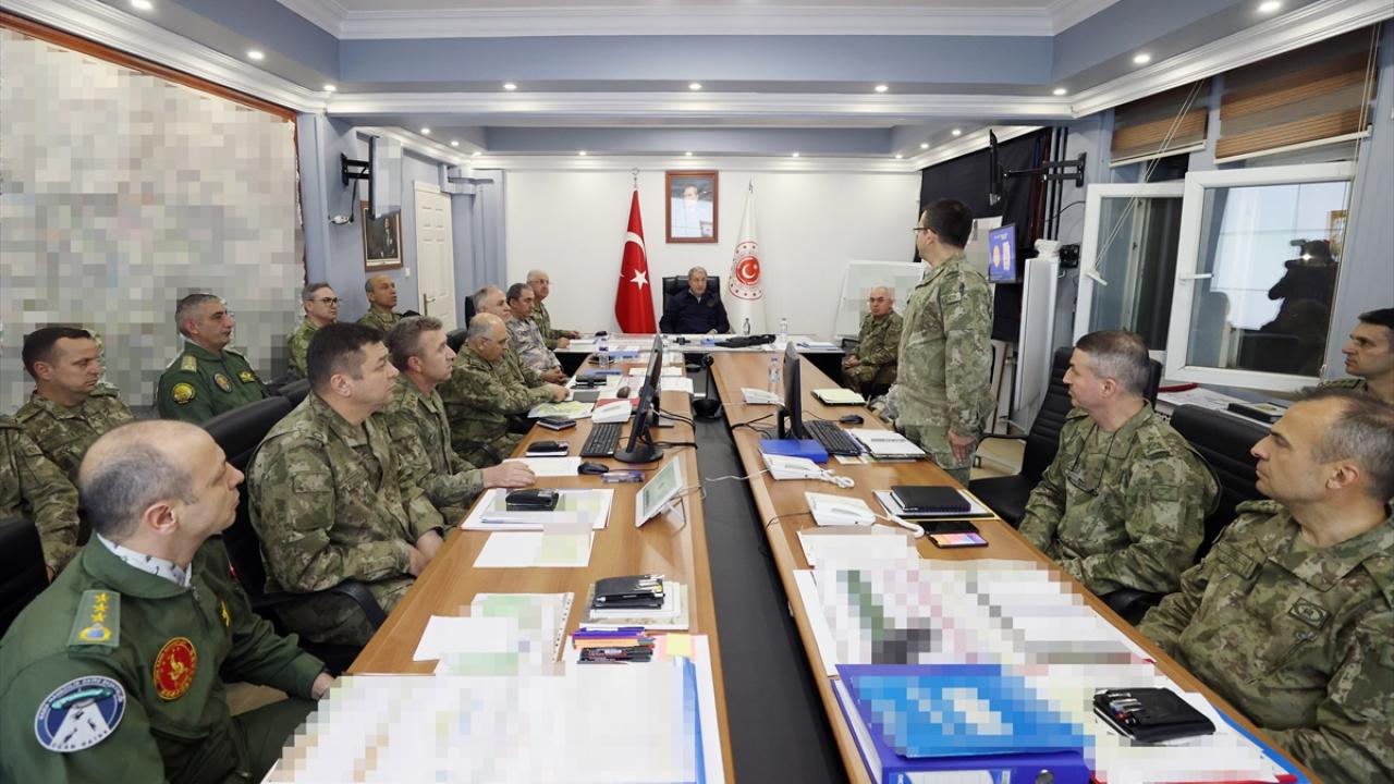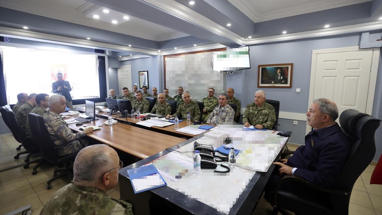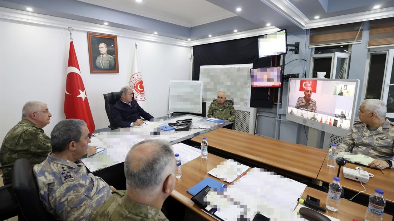 Gece boyunca buradan Pençe Kilit Operasyonu`nu beraberindeki Genelkurmay Başkanı, Kara ve Hava Kuvvetleri komutanları ile takip eden Akar, operasyonda görevli sınır hattındaki ve sınır ötesindeki birliklerin komutanları ile video konferans yöntemi ile görüştü. Son durumu ilişkin aldığı bilgiler kapsamında yeni talimatlar veren Akar, Pençe Kilit Operasyonu sırasında teröristlerin hain saldırısı sonucu şehit olan 5 kahraman askere rahmet dileyerek sözlerine başladı.