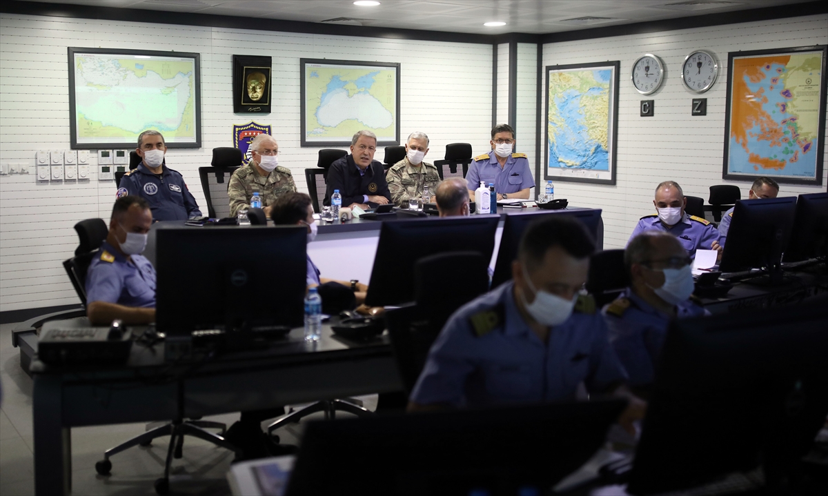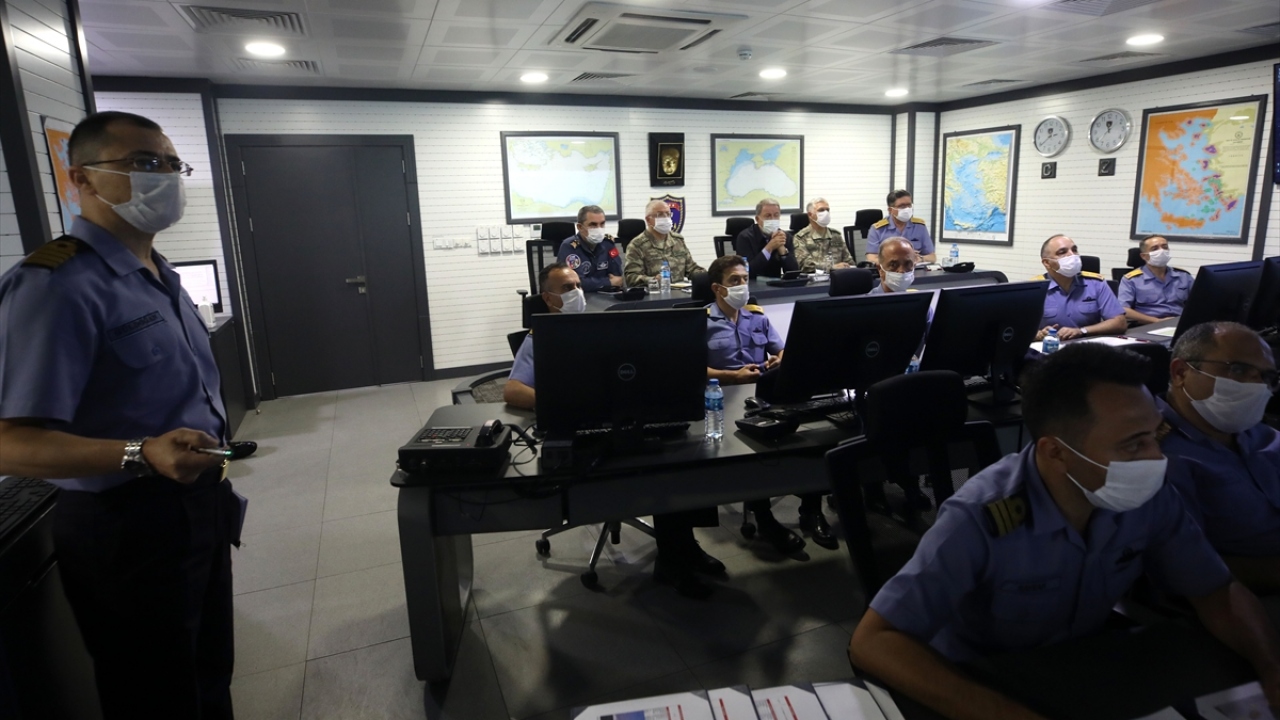 Milli Savunma Bakanı Hulusi Akar, beraberinde Genelkurmay Başkanı Orgeneral Yaşar Güler, Kara Kuvvetleri Komutanı Orgeneral Ümit Dündar, Hava Kuvvetleri Komutanı Orgeneral Hasan Küçükakyüz ve Deniz Kuvvetleri Komutanı Oramiral Adnan Özbal ile geldiği Deniz Kuvvetleri Donanma Komutanlığı Harekat Merkezi'nde denetleme ve incelemelerde bulundu, faaliyetlere ilişkin bilgi aldı, talimatlar verdi.