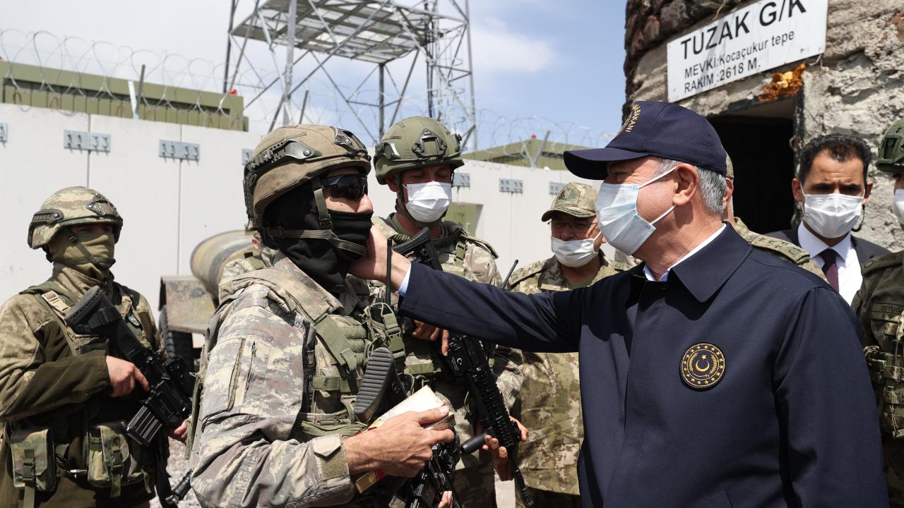 Alınan tedbirleri yerinde inceleyen, faaliyetlere ilişkin bilgi alan Akar’a sahadaki durumu sorduğu Mehmetçik, “Biz buradayken ne terörist ne yasa dışı göçmen yurdumuza girebilir” dedi.