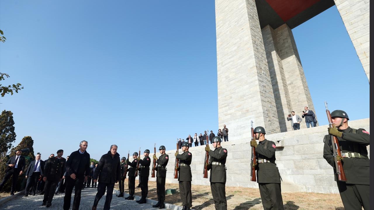 Tören kıtasıyla karşılanan Akar ve Stoltenberg, temsili şehitlik ile Meçhul Asker Anıtı`na karanfil bıraktı.