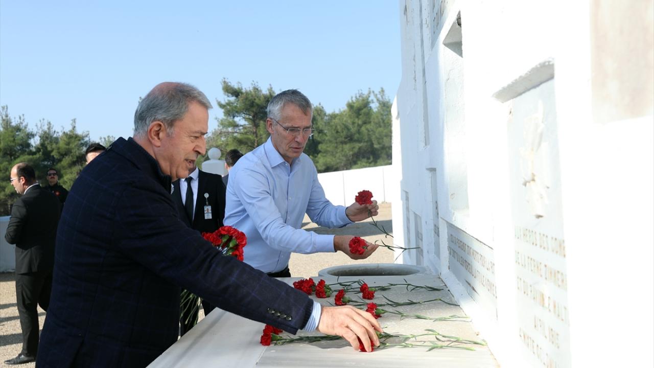 Buradan Seddülbahir`e geçen Bakan Akar ve Stoltenberg önce Fransız Anıtı, ardından İngiliz Milletler Topluluğu Anıtı`nı (Cape Helles) ziyaret ederek karanfil bıraktı.