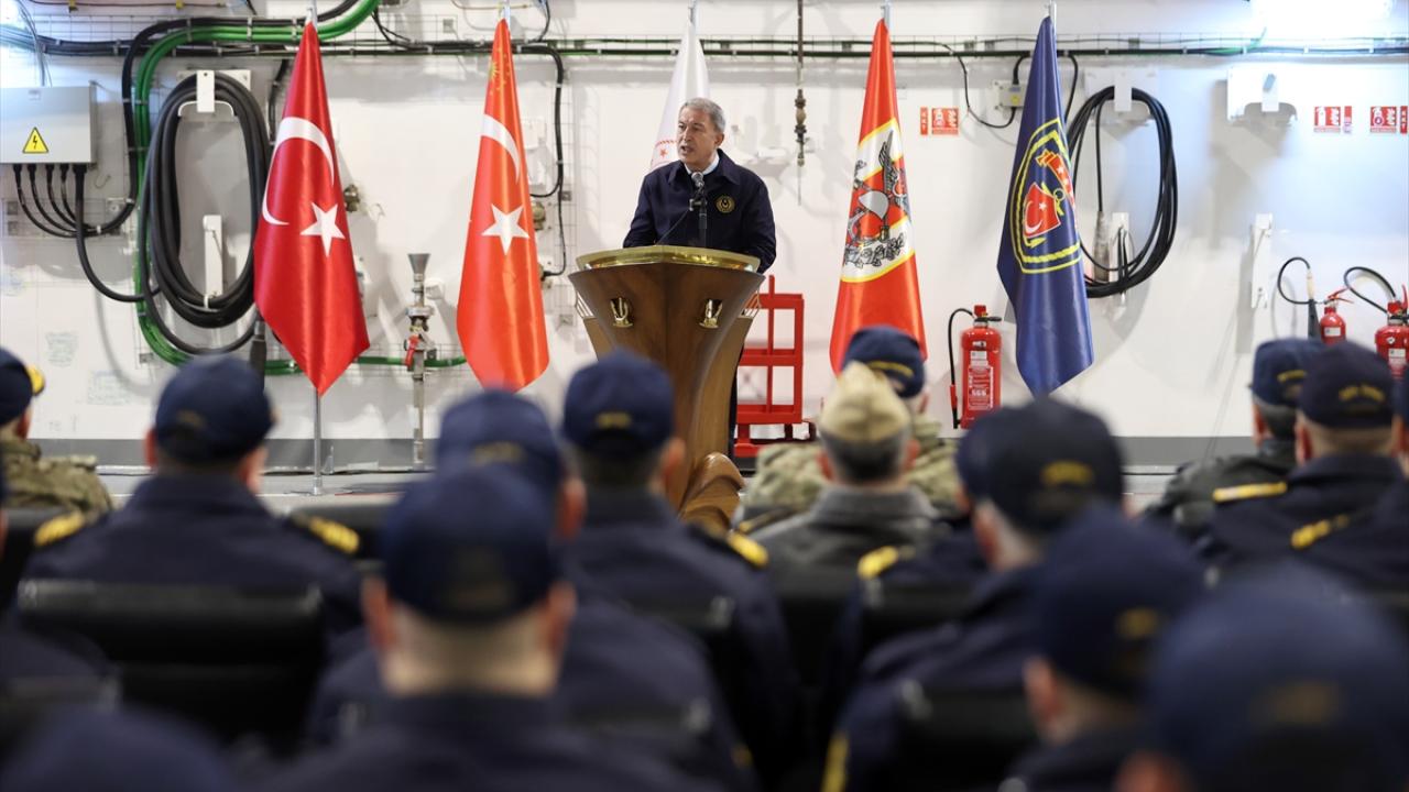 Türkiye`nin diyalog çağrılarının zafiyet olarak anlaşılmaması gerektiğini vurgulayan Akar, "Samimi olarak iyi komşuluk ilişkileri içinde Ege`deki zenginliklerin adil şekilde paylaşılmasından söz ediyoruz. Ancak bunun yanı sıra şunu da söylüyoruz, hiçbir şekilde ne kendimizin ne Kıbrıslı kardeşlerimizin hakkını, hukukunu çiğnetmeyecek, hiçbir oldubittiye müsaade etmeyeceğiz." sözlerini sarf etti.