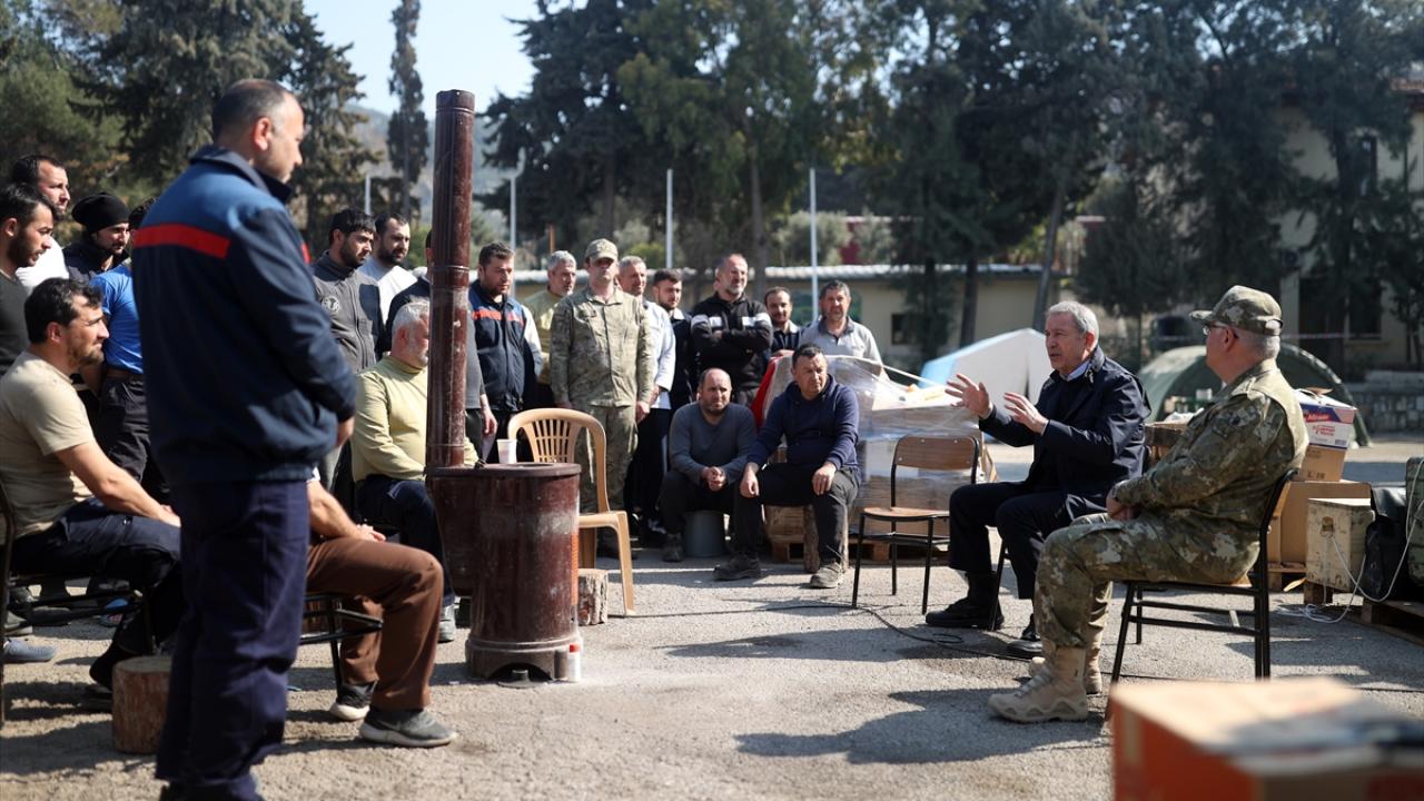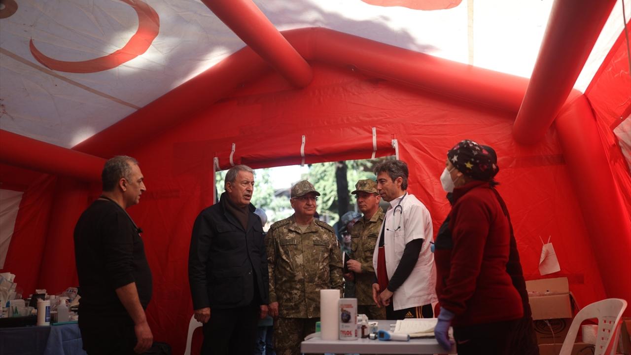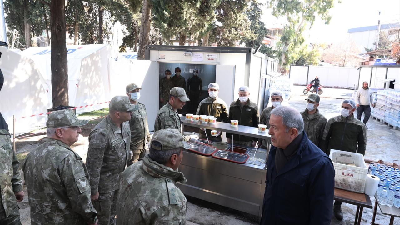 Milli Savunma Bakanı Hulusi Akar, Defne ve Kumlu ilçelerinde çadır kentte kalan depremzedeler ve kentin kanaat önderlerini ziyaret etti, Türk Silahlı Kuvvetlerinin (TSK) depremzedelere hizmet amacıyla kurduğu mutfak, fırın ve çamaşırhanede incelemelerde bulundu.
