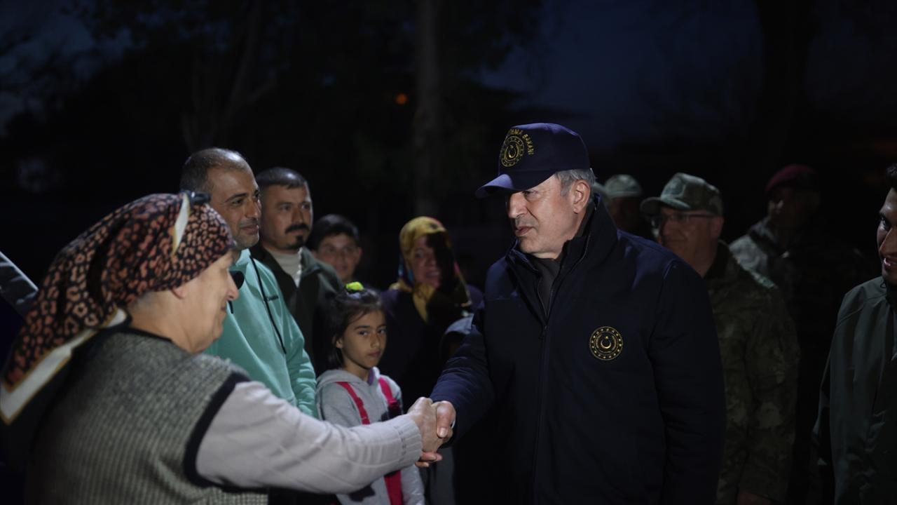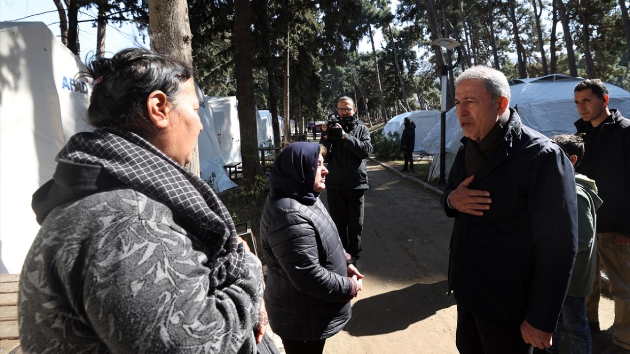 Akar ve Orgeneral Güler çadır kentteki depremzedeleri ziyaret etti, taleplerini dinledi. Çocuklarla yakından ilgilenen Akar’a vatandaşlar "asrın felaketi" olarak nitelendirilen depremlerin ardından sağlanan imkanlar için teşekkür ederek, "Deprem gecesinden beri bizlerle devamlı ilgileniliyor, ihtiyaçlarımız karşılanıyor. Devletimizden Allah razı olsun. Biz sizlerden razıyız. Bu ülke hepimizin ülkesi. İnşallah birlik, beraberlik içinde bu günleri atlatacağımıza inanıyorum. Allah bir daha bugünleri göstermesin." dediler.