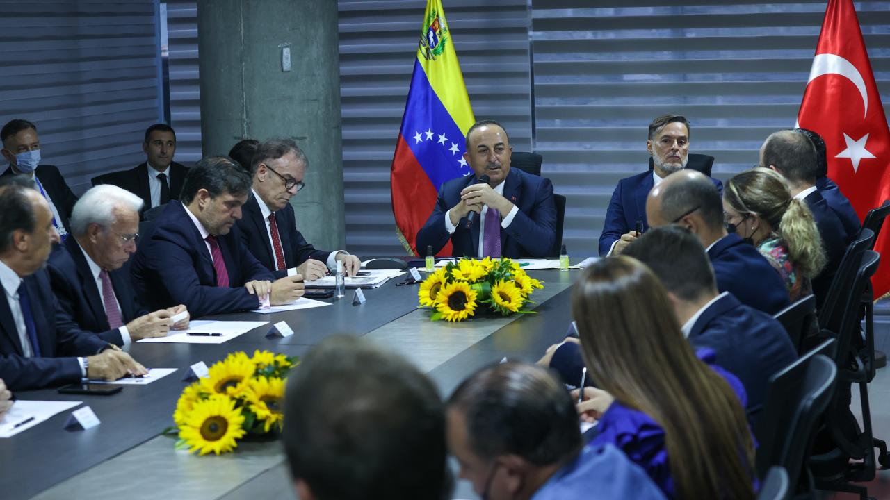 Dışişleri Bakanı Mevlüt Çavuşoğlu, resmi ziyaret için geldiği Venezuela’nın başkenti Karakas’ta, Türk ve Venezuelalı iş insanları ile bir araya geldi.