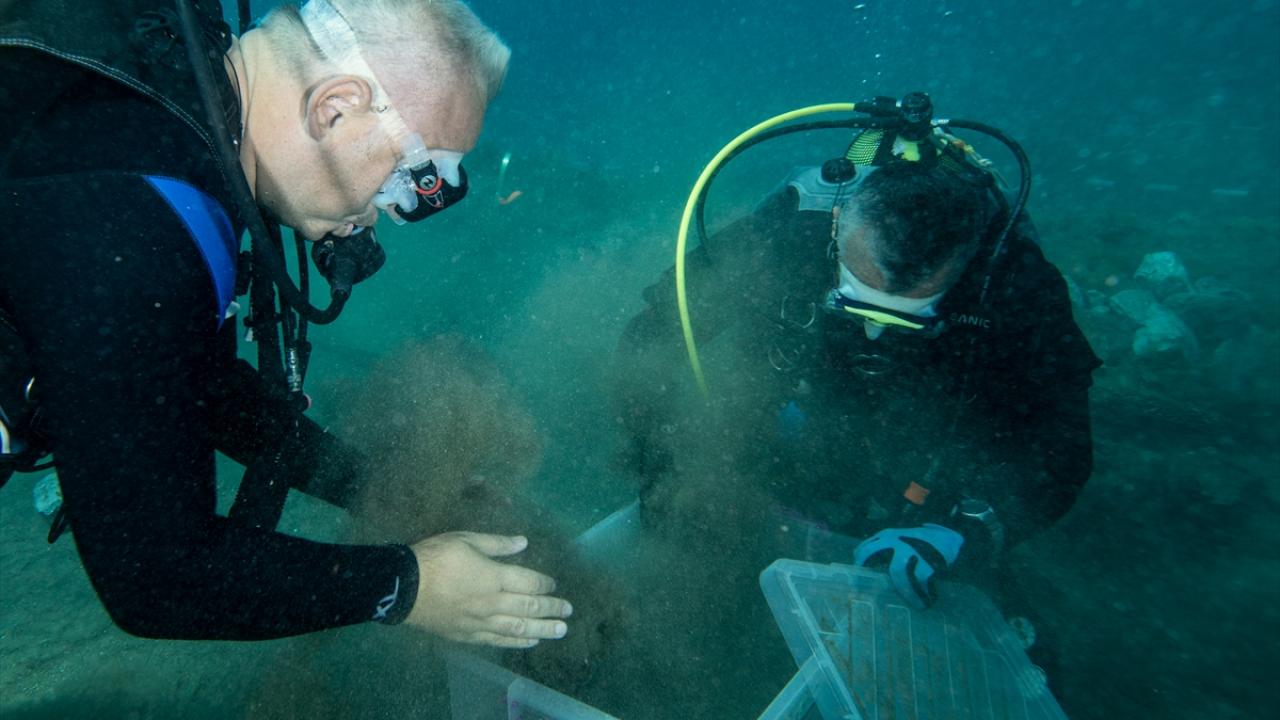 Geçen yıl başlatılan çalışmalarda batıktan çıkarılan eserleri de inceleyen Ersoy, daha sonra kazı ekibiyle dalış yaptı.