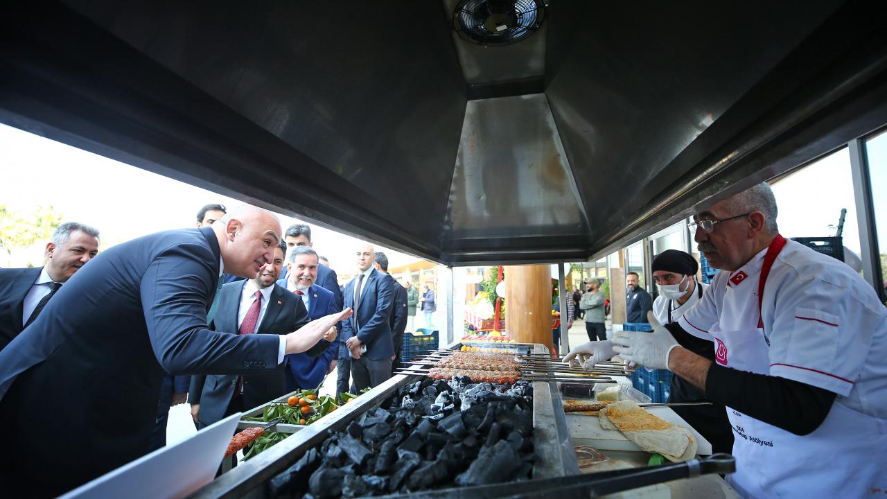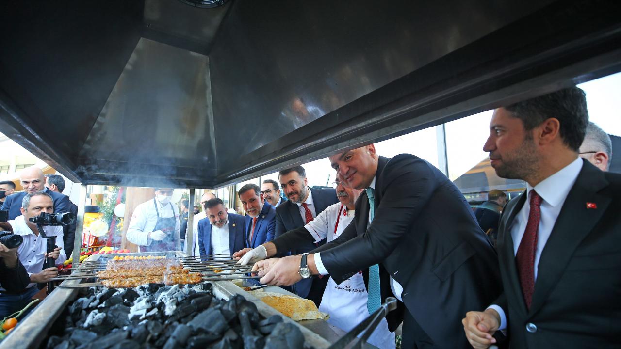 Adana`da mangalın da başına geçerek kebap pişiren Bakan Ersoy, ustalarla bir süre sohbet etti.