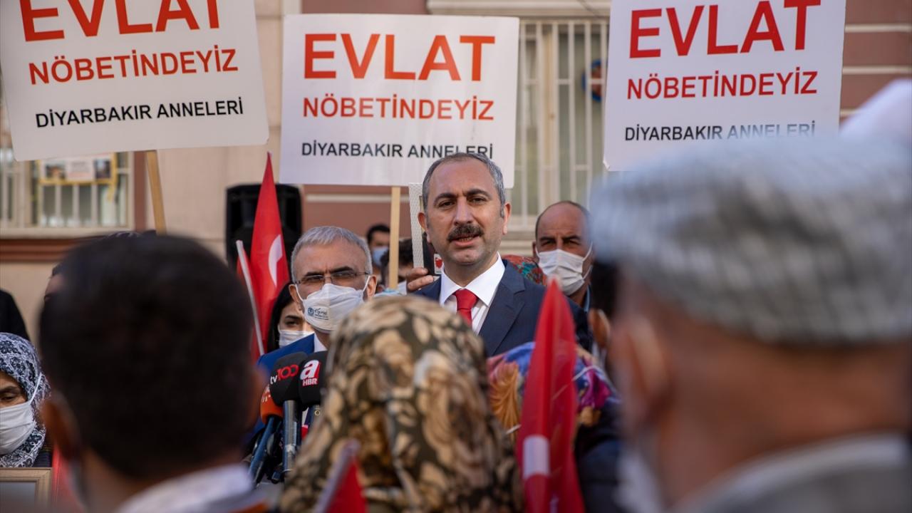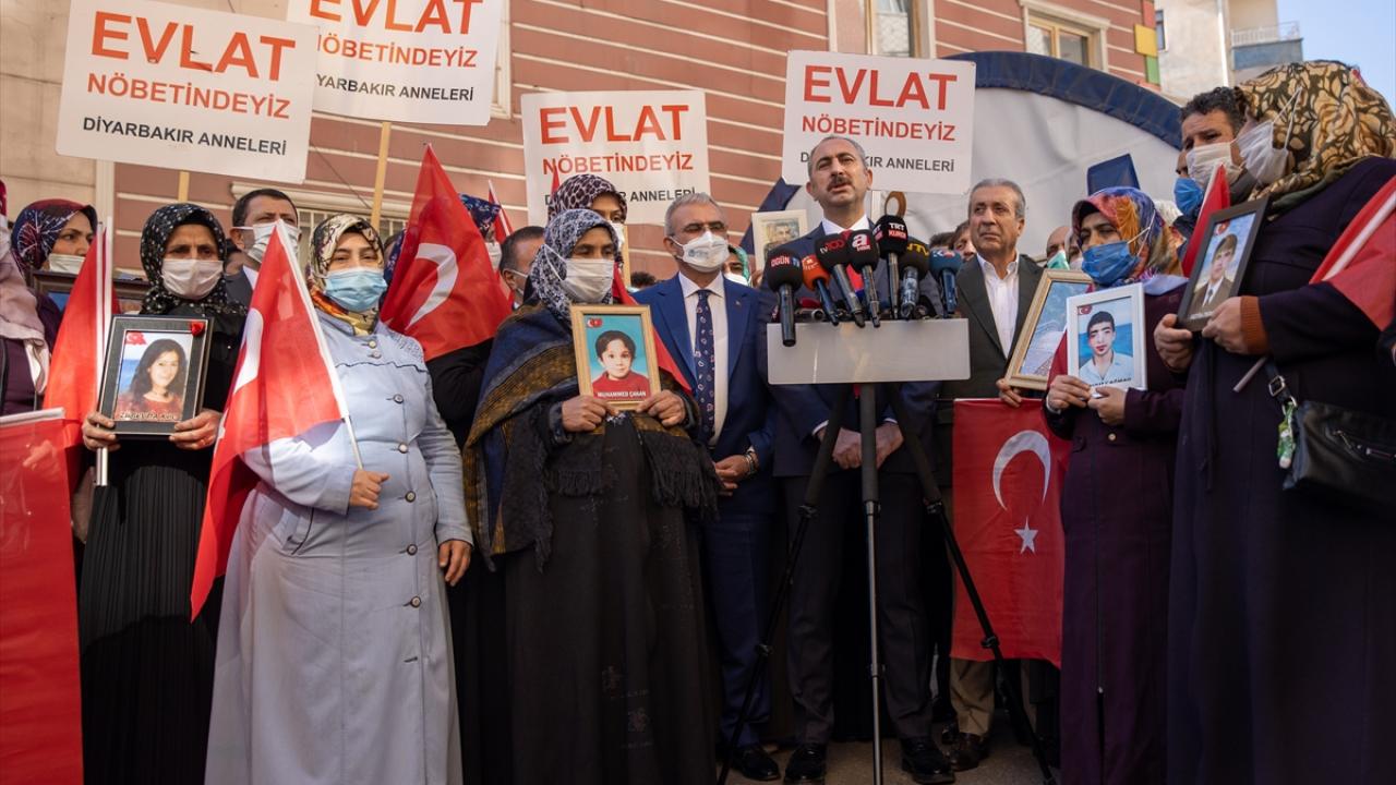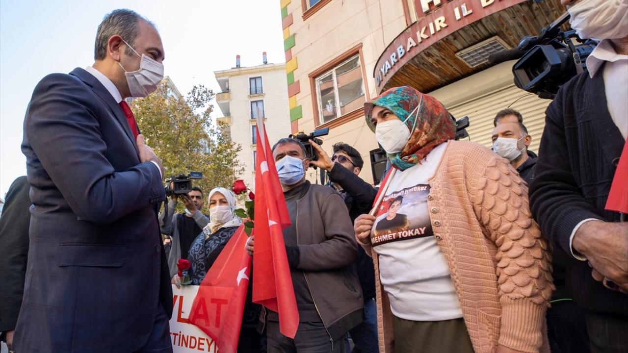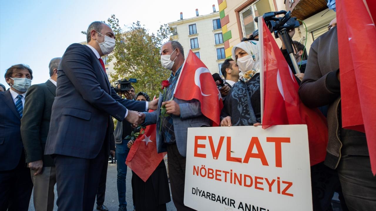 Adalet Bakanı Abdulhamit Gül, dağa kaçırılan çocuklarına kavuşmak için HDP İl Başkanlığı binası önünde eylem yapan Diyarbakır annelerini ziyaret ederek anne ve babalarla görüştü.
