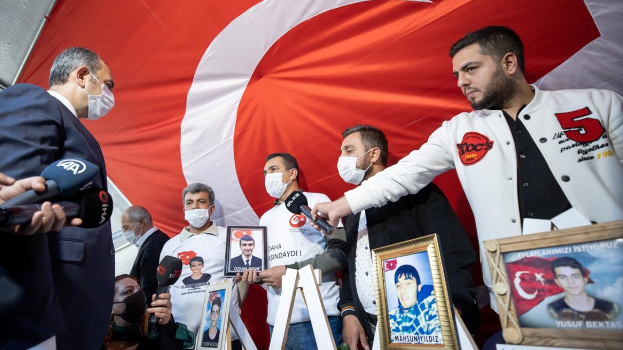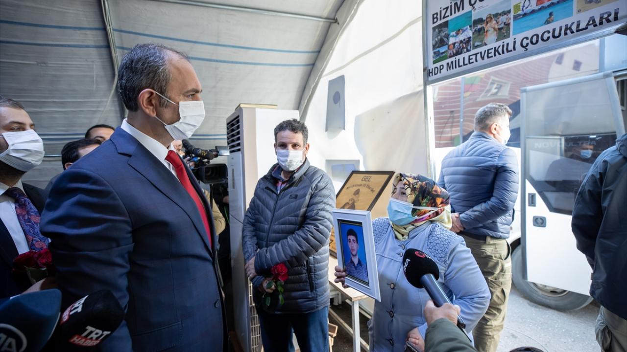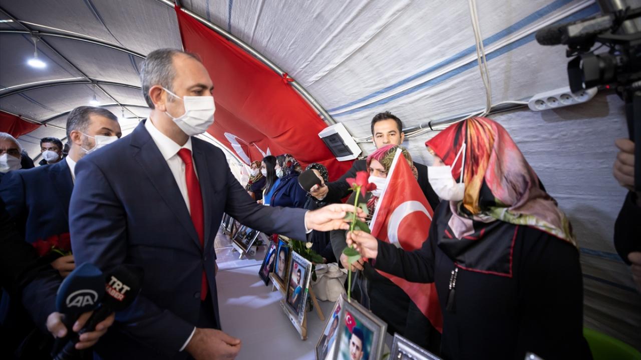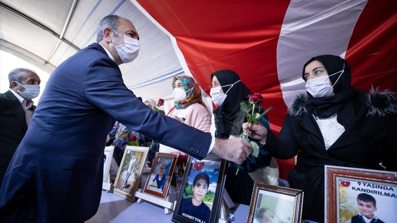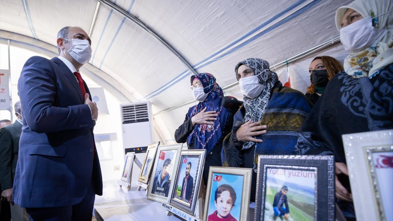 Adalet Bakanı Abdulhamit Gül, dağa kaçırılan çocuklarına kavuşmak için HDP İl Başkanlığı binası önünde eylem yapan Diyarbakır annelerini ziyaret ederek anne ve babalarla görüştü.
