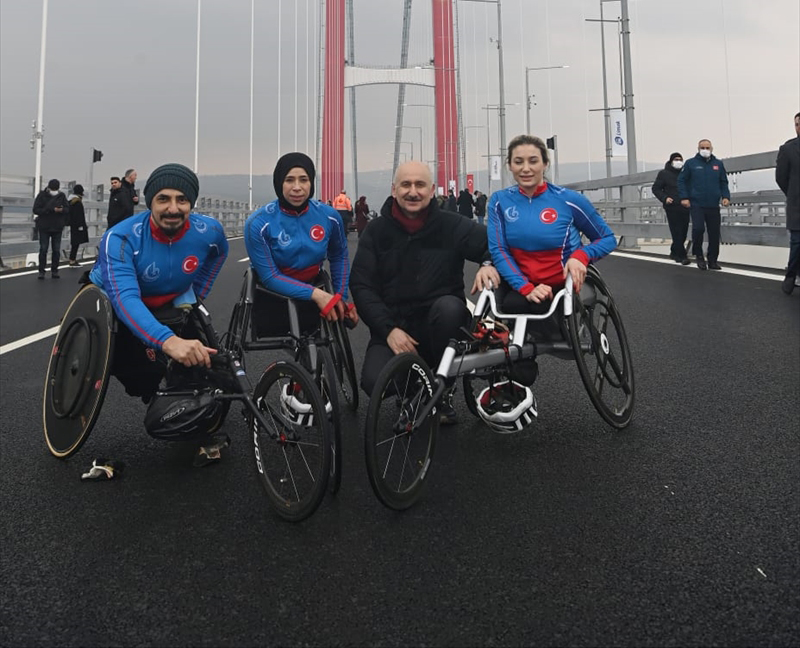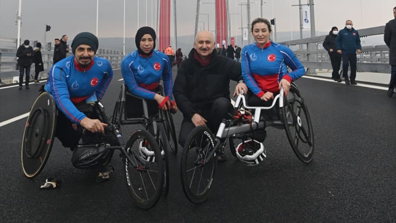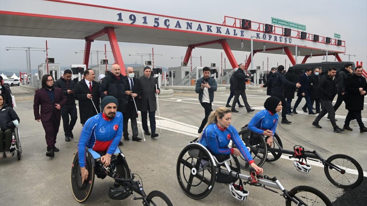 Ulaştırma ve Altyapı Bakanı Adil Karaismailoğlu, 1915 Çanakkale Köprüsü'nde açıklamalarda bulundu. Bakan Adil Karaismailoğlu, konuşmasının ardından beraberindeki Türkiye Sakatlar Konfederasyonu Başkanı Yusuf Çelebi ve engelli milli sporcular ile köprüde yürüdü.