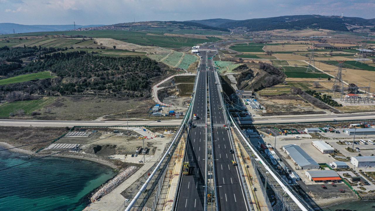 "Ayrıca şehrimiz ve bölgemizden, İstanbul başta olmak üzere Marmara`ya ulaşan tarım ürünlerimiz de artık havanın ve denizin insafına kalmadan önce manavlarımıza ve marketlerimize, ardından da milletimizin sofrasına daha erken gelecek. Otoyol ve köprümüz, önemli turizm destinasyonu olan Marmara, Ege ve Çanakkale`nin kültür ve turizmine de destek olacaktır. Avrupa ve Balkanlar`ın yanı sıra Yunanistan ve Bulgaristan ile ticari ve kültürel ilişkilerimize olumlu katkı sağlayacaktır. Projemiz ile aynı zamanda Türkiye`nin batısındaki otoyol entegrasyonu da sağlanacaktır. Bir Kuşak Bir Otoyol Projelerimizle, ülkemizin öncülük ettiği `orta koridor`da küresel lojistik bir süper güç olma girişimimizin çok kıymetli bir parçası olarak Pekin`den Londra`ya kadar tesis ettiğimiz kesintisiz ticaret yoluna katkı verecektir."