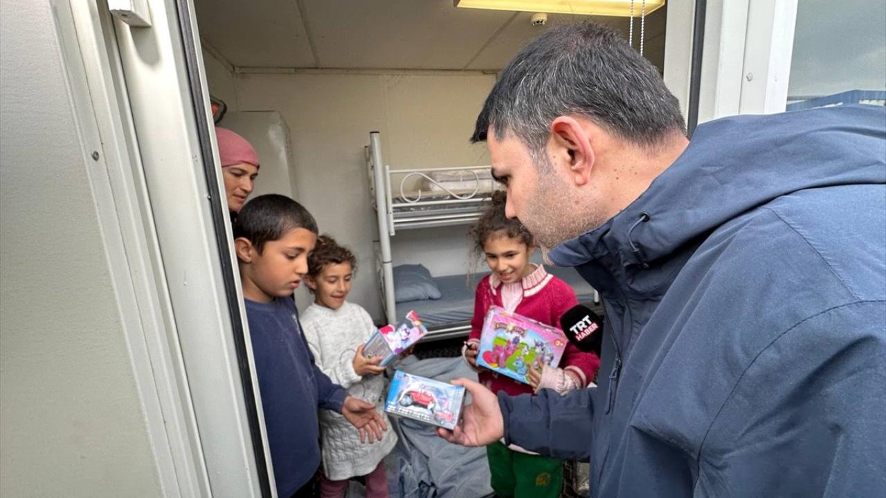 Helikopterden inerken oyuncak hediye edilen çocuklar, Bakan Murat Kurum`a teşekkür etti.