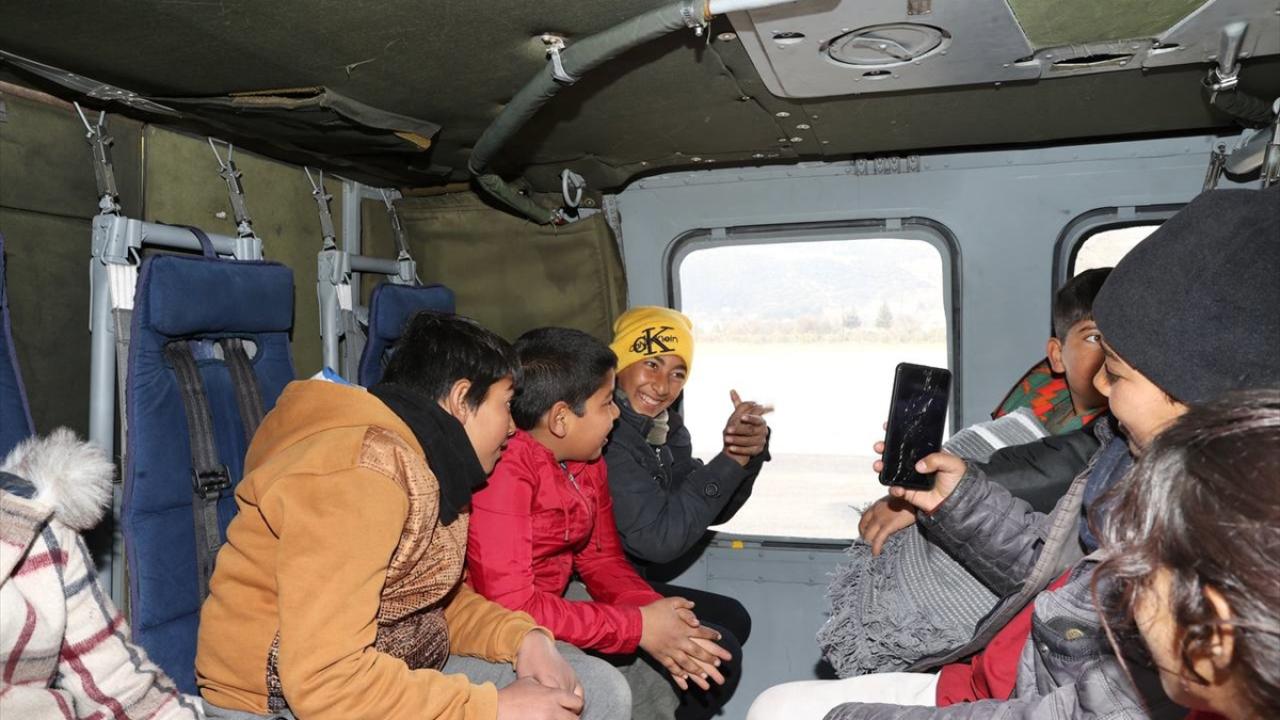 Bölgeyi gezerken Bakan Kurum`un yanına gelen bir grup depremzede çocuk, helikoptere binmeyi istediklerini söyledi. Kurum, isteklerini geri çevirmediği çocukları, alan incelemeleri için kullandığı Jandarma Genel Komutanlığına ait helikoptere bindirdi.