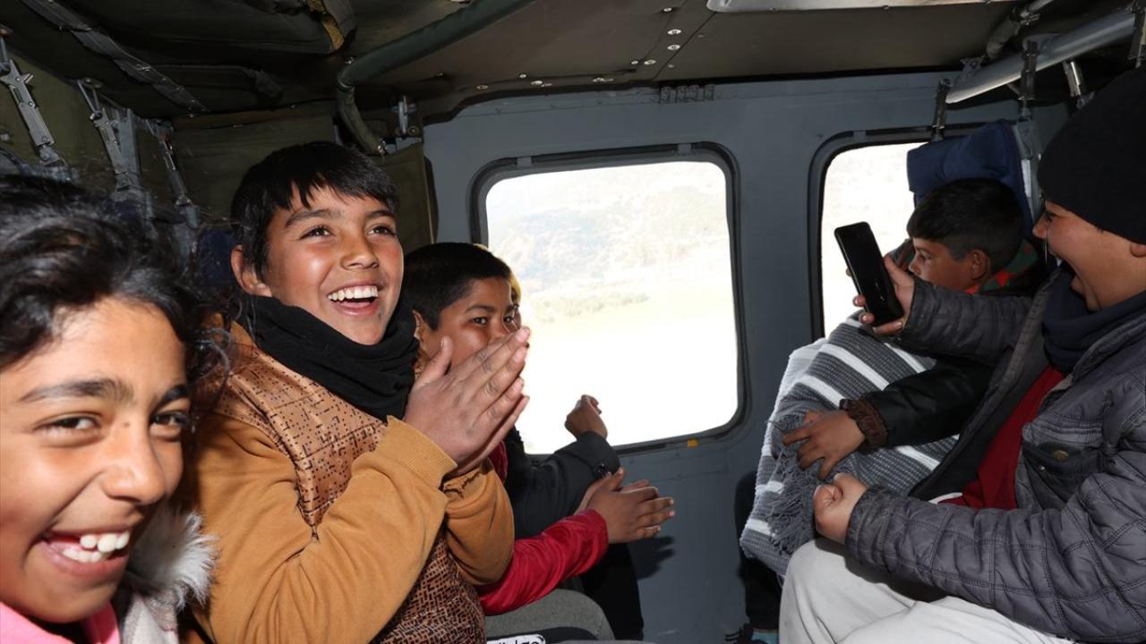 İlk kez helikoptere binmekten duydukları mutluluğu ifade eden, yaşları 7 ile 9 arasında değişen 9 depremzede çocuk, yaklaşık yarım saat Gaziantep`e gökyüzünden bakma fırsatı buldu. Bazı çocuklar ise ellerindeki telefonlarla o anları kayıt altına aldı.