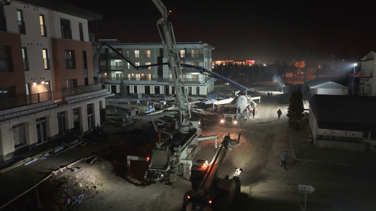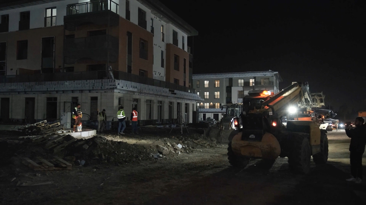 TOKİ uzmanı Tufan Gümüş de "Deprem bölgesinde 7/24 çalışmalarımız devam ediyor. Gündüz nasılsak gece de aynı şekilde konutları yetiştirebilmek için çalışmalarımız sürüyor." bilgisini verdi.