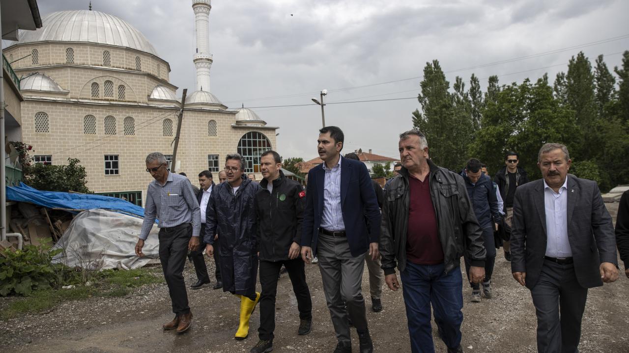 Bakan Kurum selden etkilenen Akyurt'ta incelemelerde bulundu