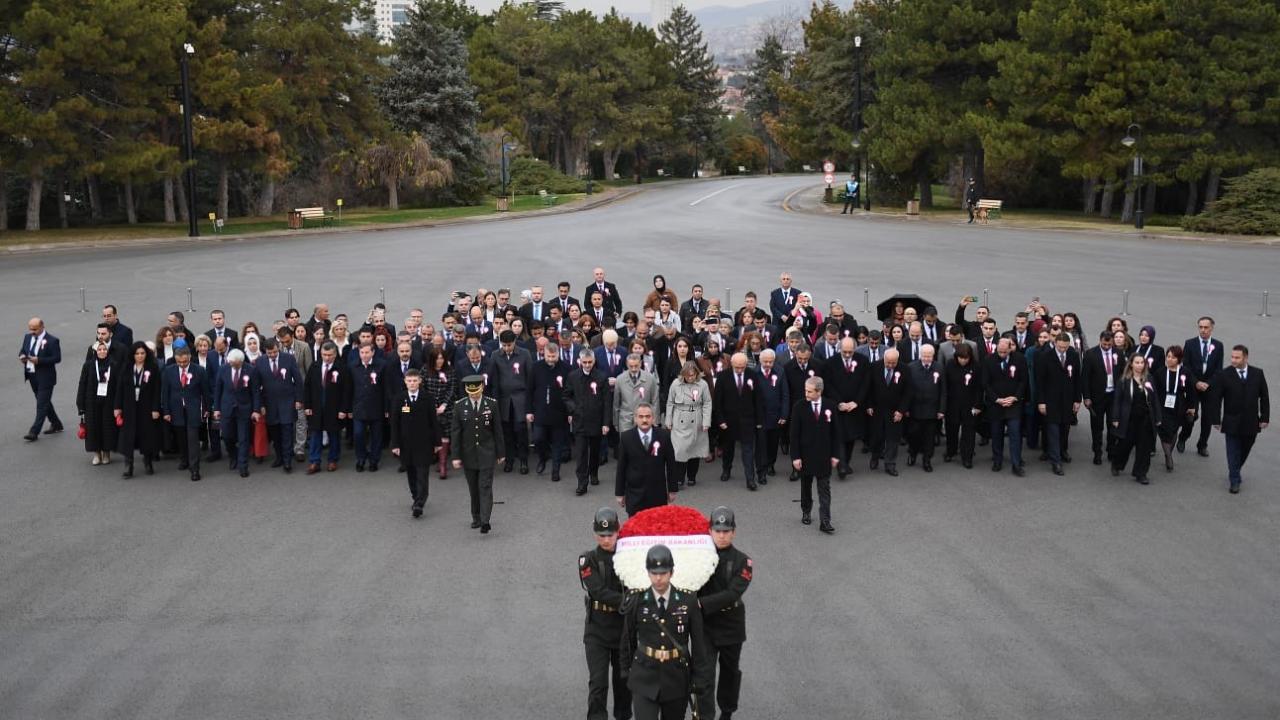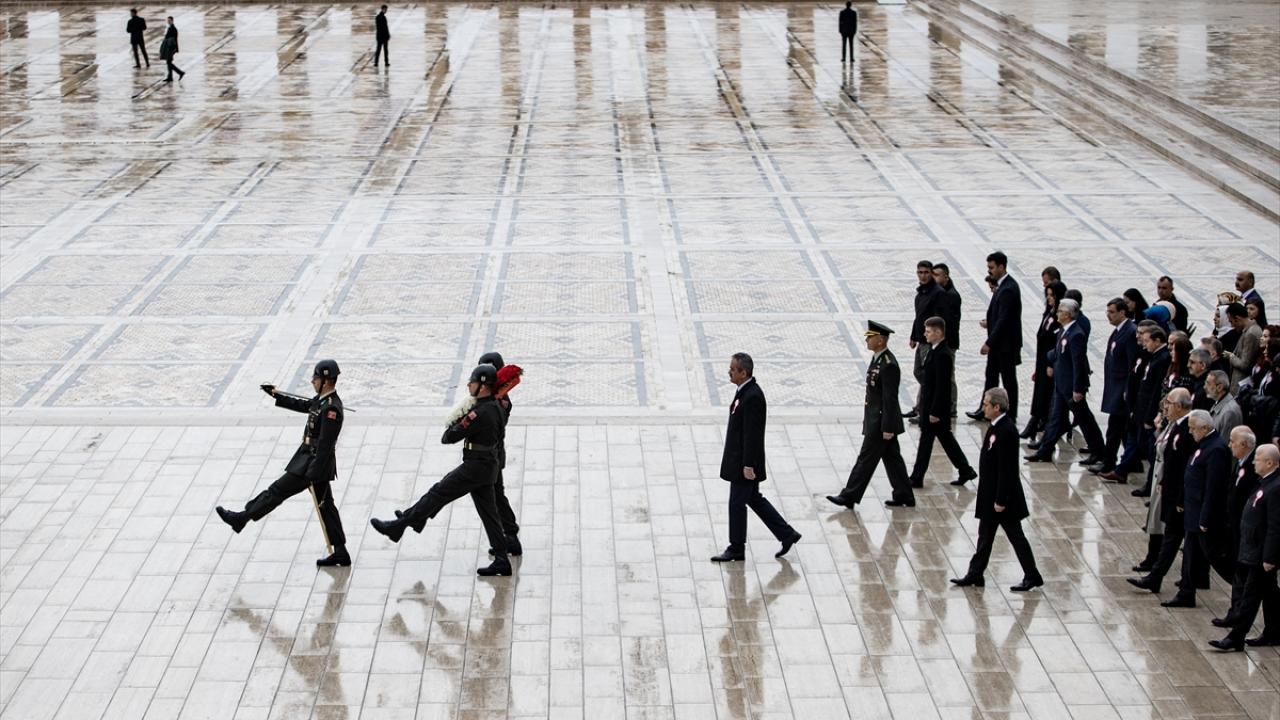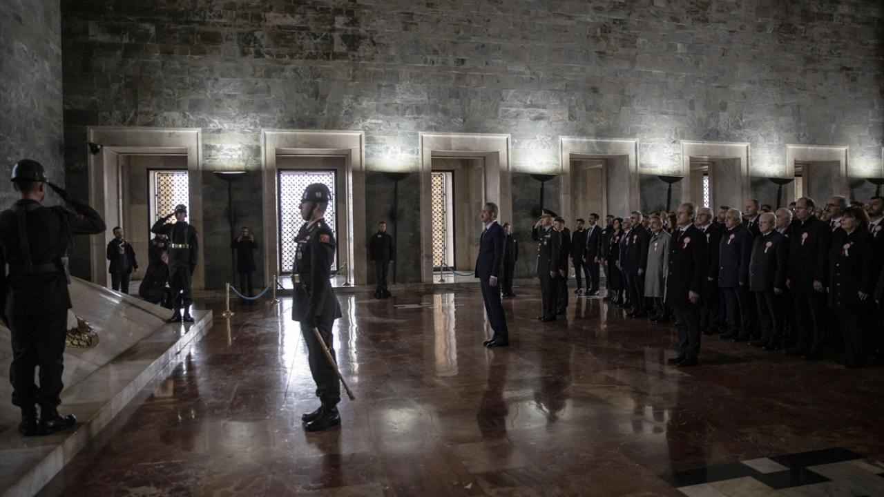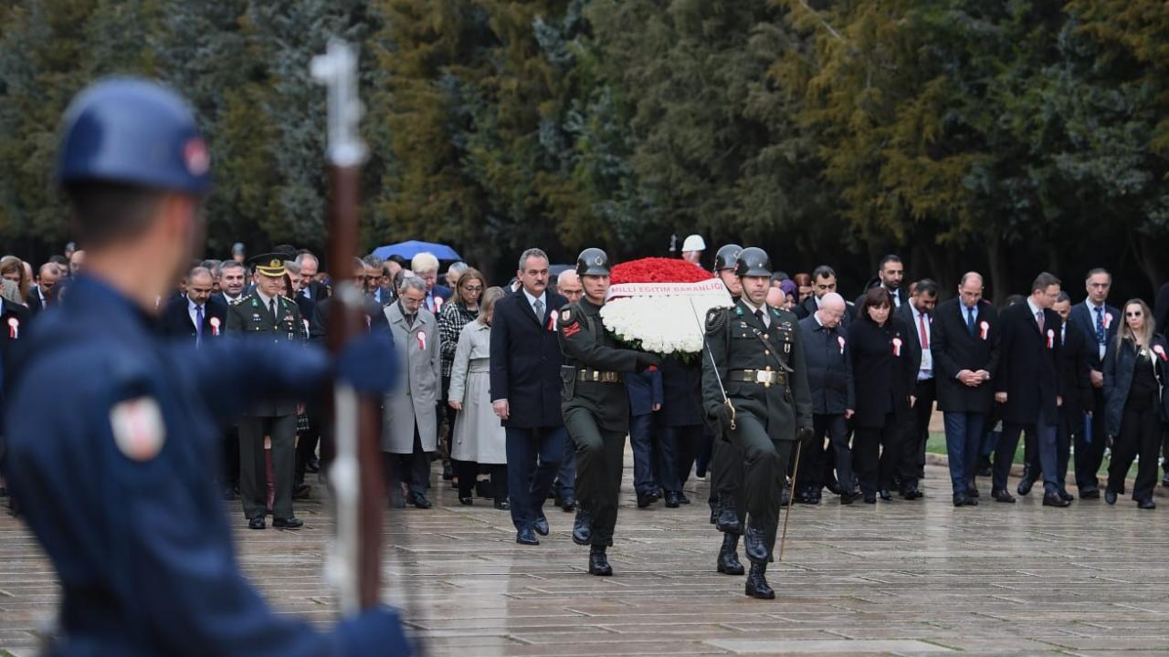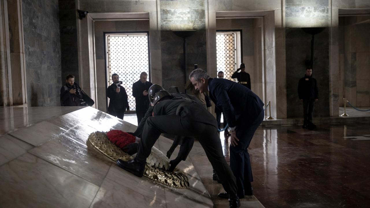 Özer`in mozoleye çelenk bırakmasının ardından saygı duruşunda bulunuldu.