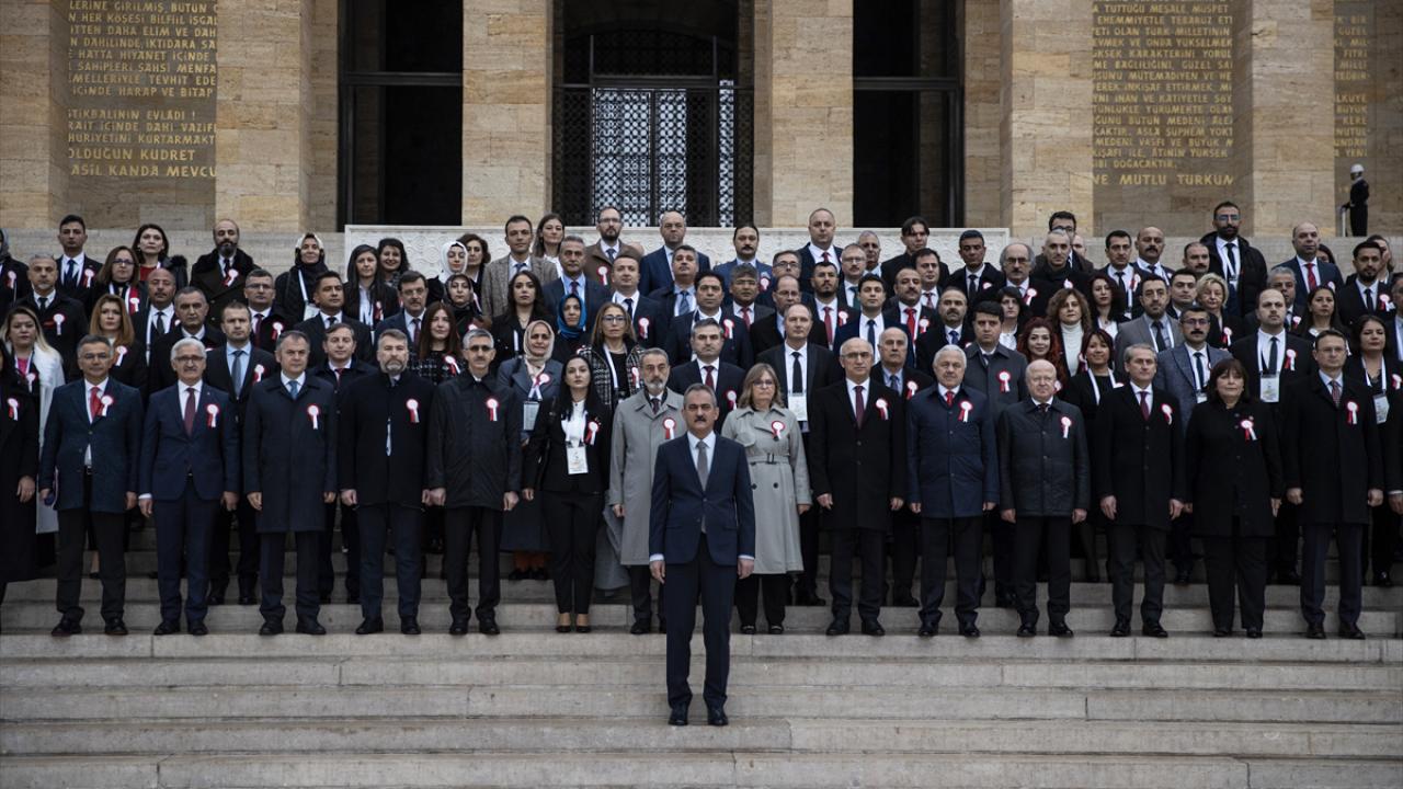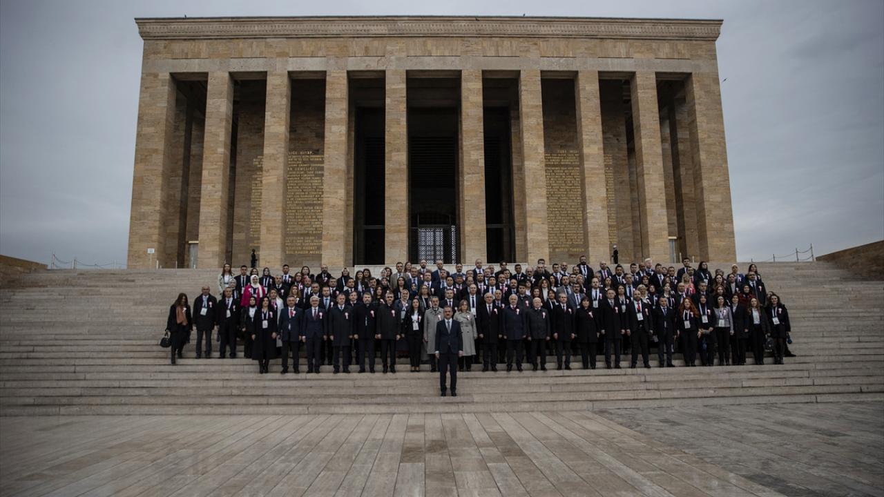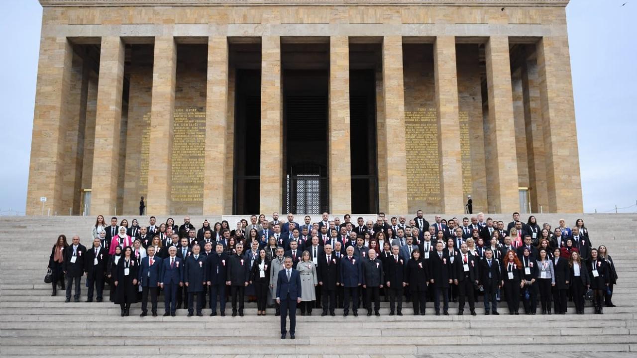 Özer, daha sonra beraberindeki öğretmenlerle Anıtkabir merdivenlerinde hatıra fotoğrafı çektirdi.