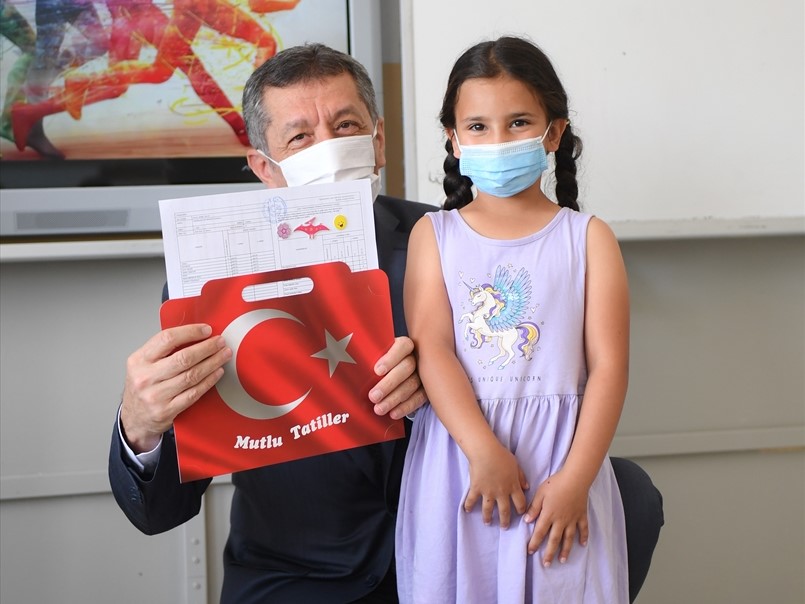 Milli Eğitim Bakanı Ziya Selçuk, 2020-2021 eğitim öğretim döneminin son gününde Ankara'nın Akyurt ilçesinde köy okulunu ziyaret ederek, öğrencilerin karne sevincini paylaştı.