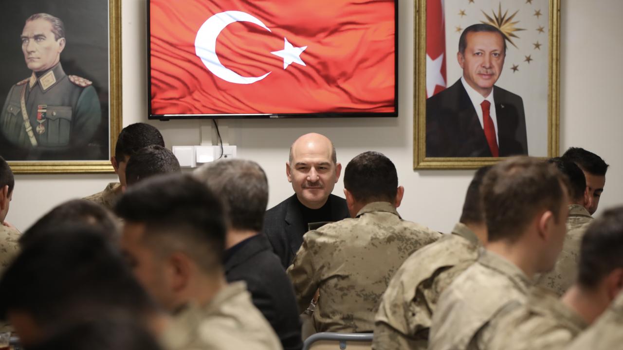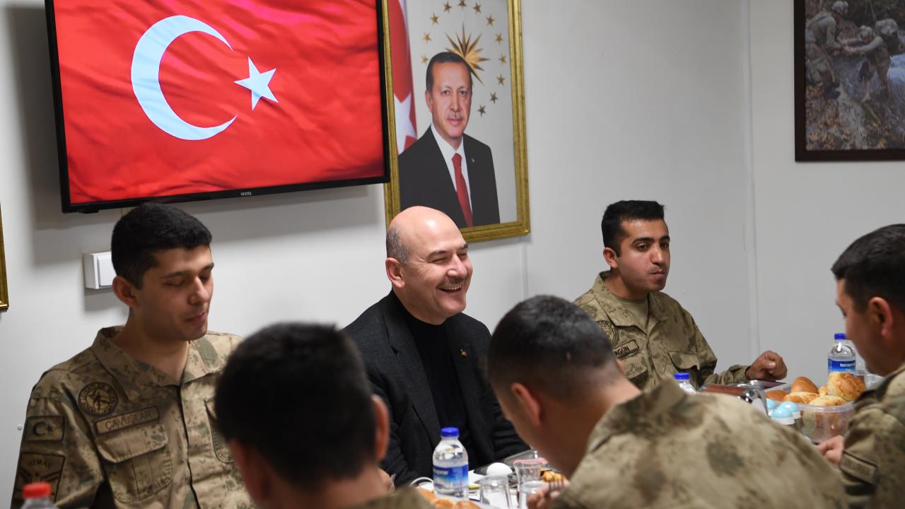 İçişleri Bakanı Süleyman Soylu, Irak sınırındaki 2 bin 100 rakımlı Cudi Dağı Şehit Jandarma Astsubay Kıdemli Üstçavuş Halit Özçelik Modüler Güvenlikli Üs Bölgesi'ndeki askerlerle kahvaltı yaptı.
