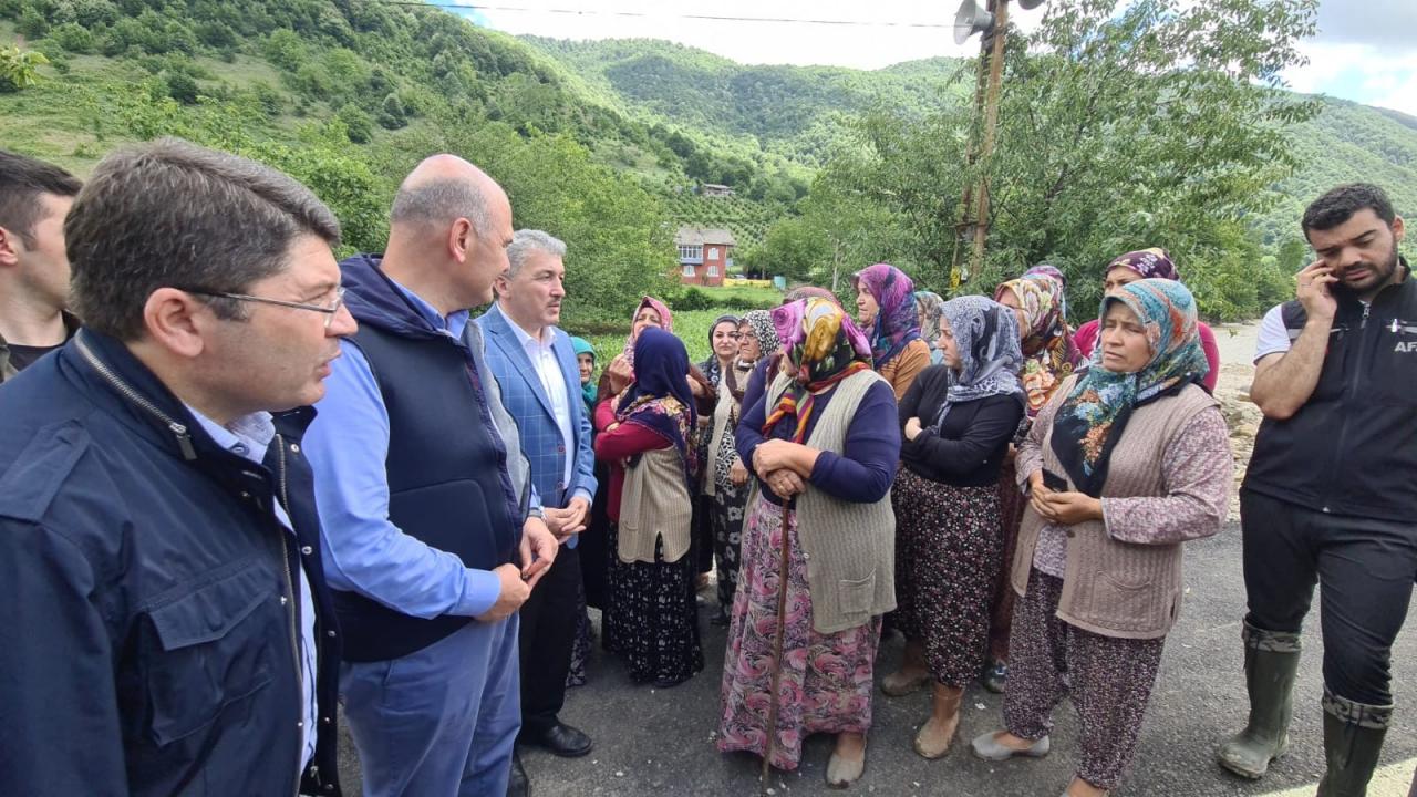 Sel ve taşkınlar nedeniyle hasar gören noktaları tek tek gezen Bakan Soylu karayolu bağlantısı kesilen Şarköy’e helikoptere ulaştı.
