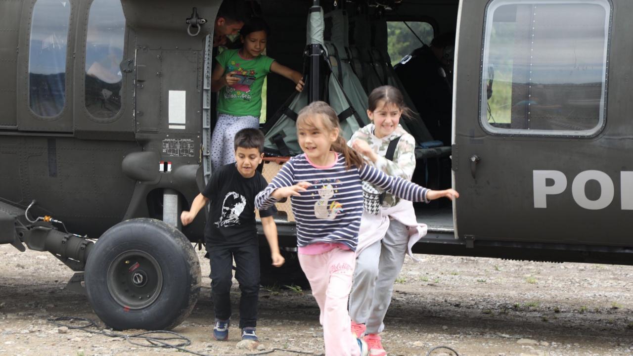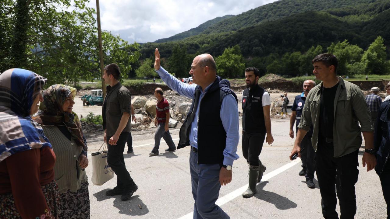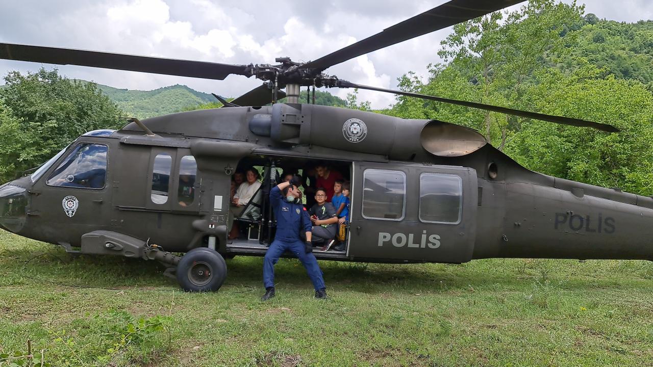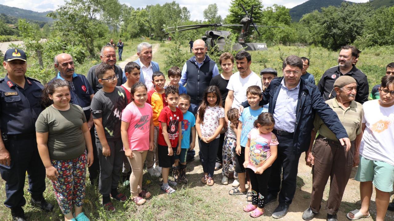 Sel taşkınlarının yaşandığı Bartın’da incelemelerde bulunan İçişleri Bakanı Süleyman Soylu yol bağlantısı kesilen Şarköy’e helikopterle ulaştı. Bakan soylu burada çocukların helikoptere binme isteğini geri çevirmedi. Helikopterle gökyüzünde turlayan çocuklar büyük sevinç yaşadı.