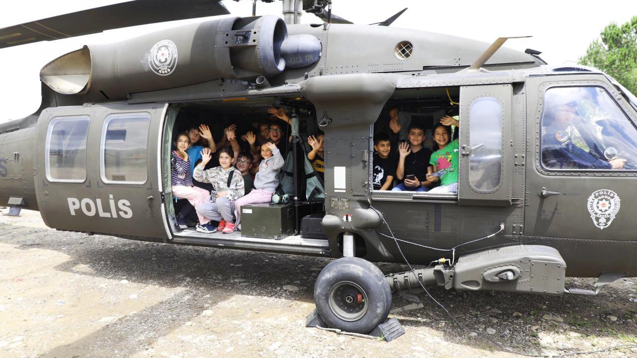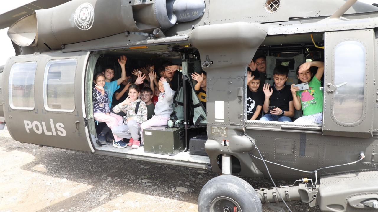 Bakan Soylu’nun çocukların helikopterle gezdirilmesi talimatını vermesinin ardından ilk kez helikoptere binen ve gökyüzünde polis helikopteriyle turlayan çocuklar büyük sevinç yaşadılar.