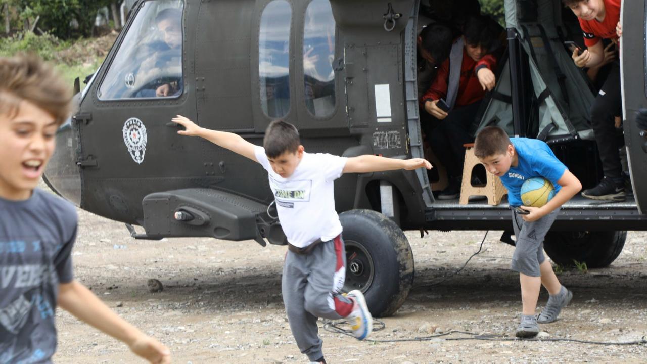 Bakan Soylu burada çocukların helikoptere binme isteğini geri çevirmedi.