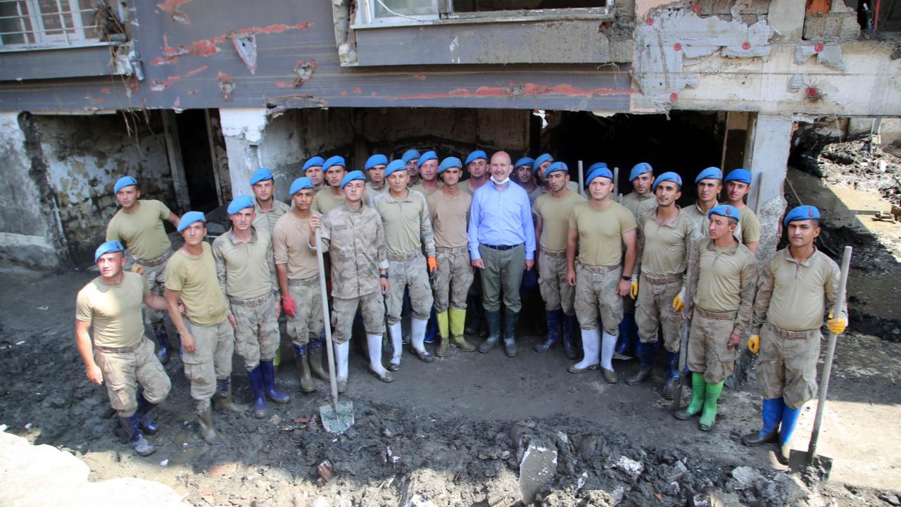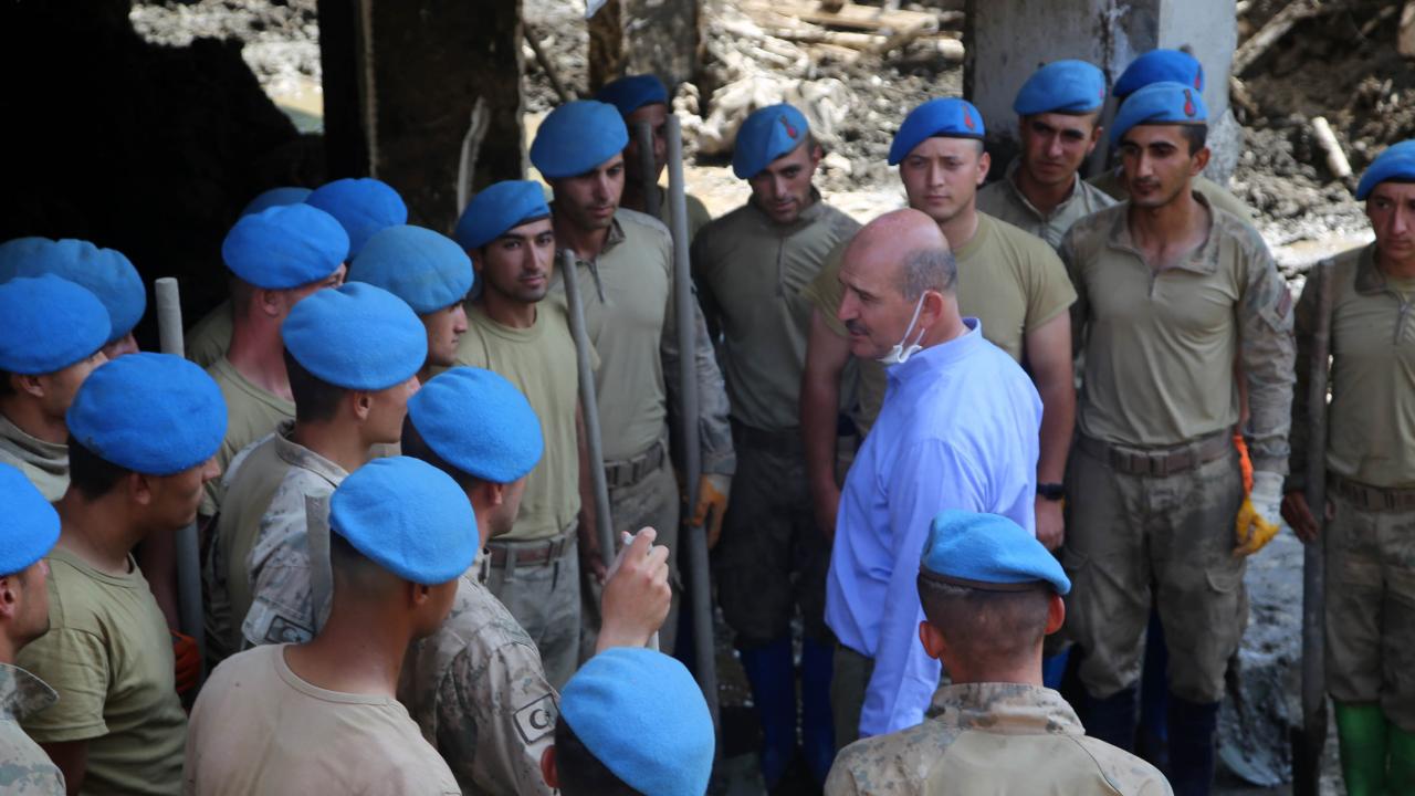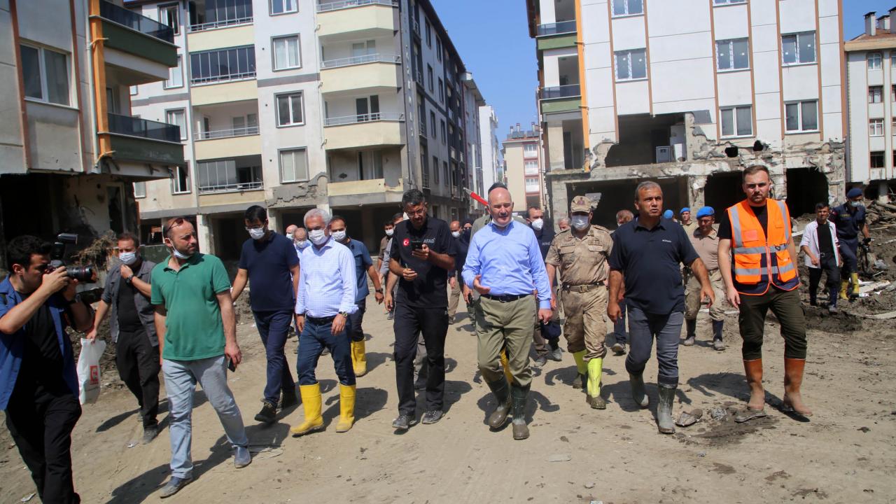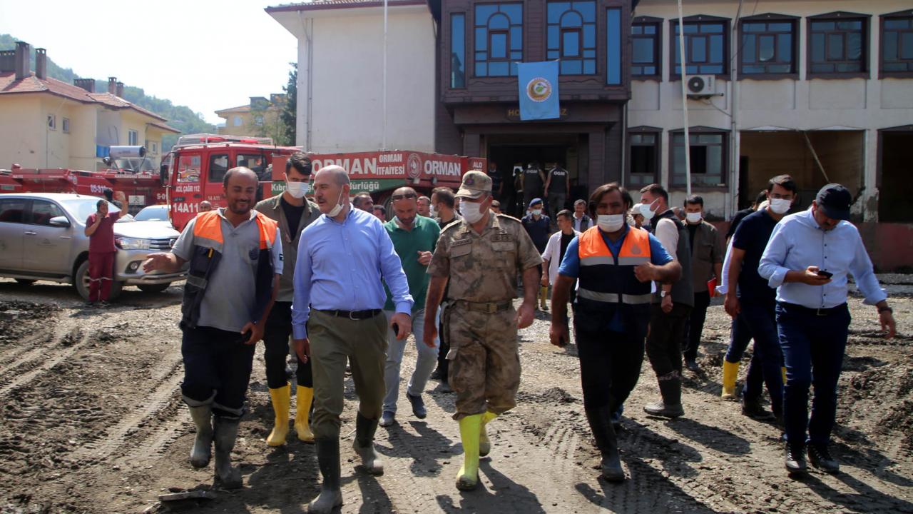 İçişleri Bakanı Süleyman Soylu, sel felaketinin yaşandığı Kastamonu'nun Bozkurt ilçesinde incelemelerine devam etti.