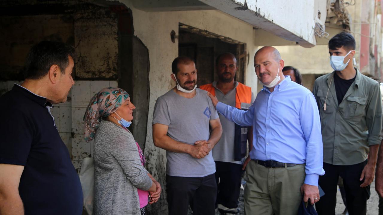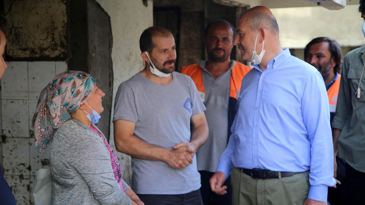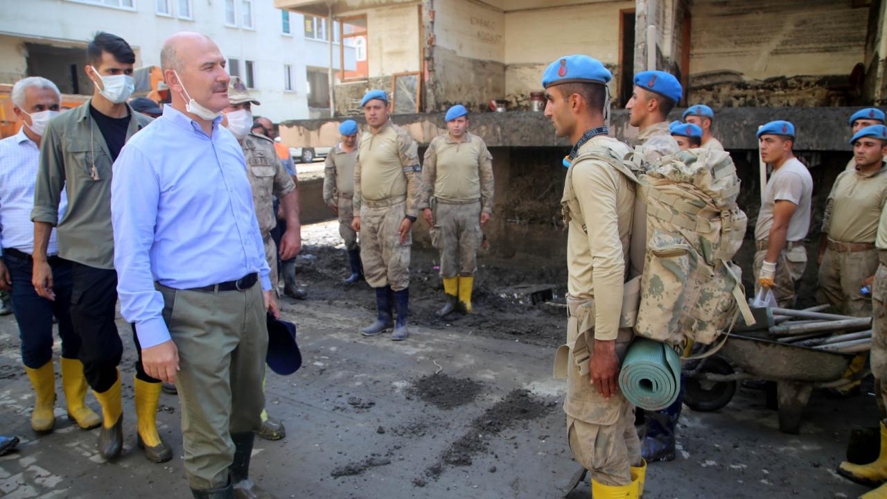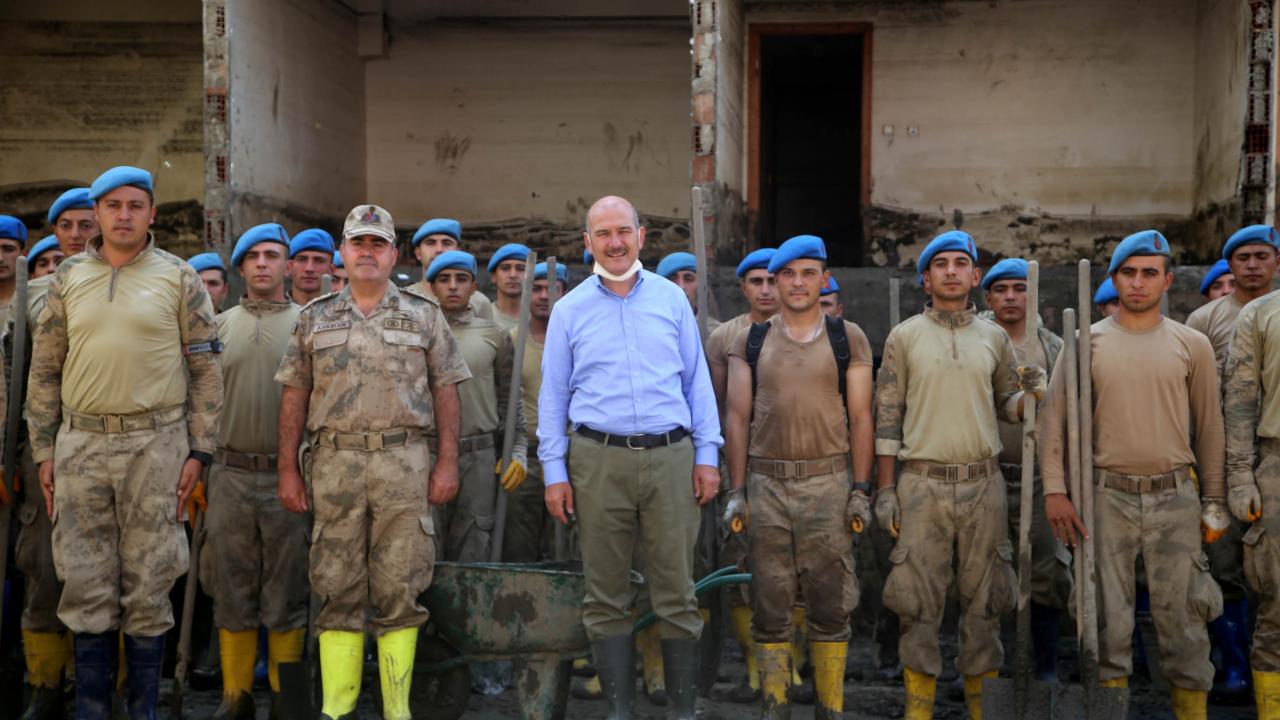 Vatandaşlarla sohbet eden Soylu, temizlik çalışmalarında görev alan jandarma personeli ile de bir süre görüştü.