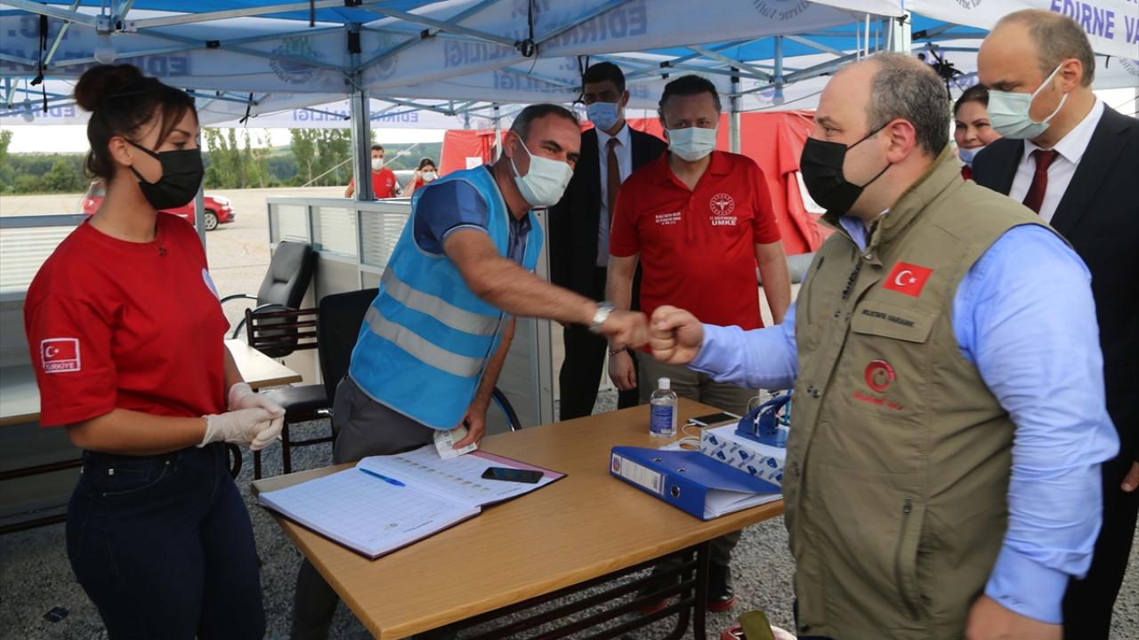 Sağlık Bakanlığının sınır kapılarına kurduğu Mobil Aşı Noktasını da ziyaret eden Varank, aşı olan bir tır sürücüsüne "Şifa olsun" dedi. Varank, sınırda 24 saat esaslı görev yapan polis, jandarma ve sağlıkçılara da kolaylıklar diledi, hatıra fotoğrafı çektirdi.