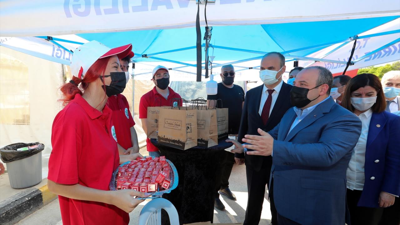Vatan hasreti çeken Türklere "Hoş geldiniz" diyen ve onlarla sohbet eden Varank, gurbetçilere hediye olarak Edirne`nin saray lezzetlerinden badem ezmesi ve Kavala kurabiyesi verdi.