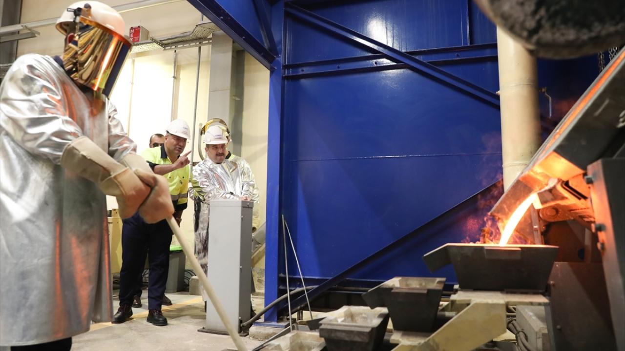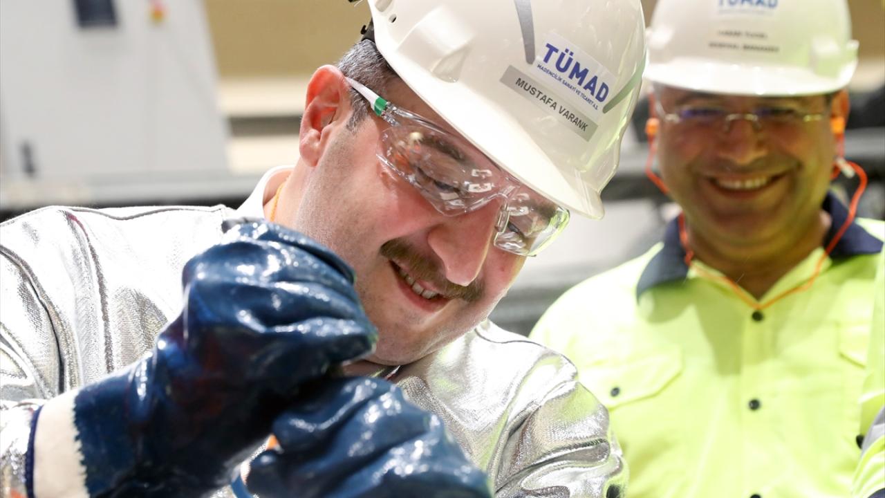İşletme hakkında yetkililerden bilgi alan Varank, altın odasına geçti. Burada altının kıvamını yüksek ısıya dayanıklı elbise ve eldivenleri takarak kontrol eden Varank, potayı devirerek altın ve gümüş madenini döküm kalıbına aktardı.