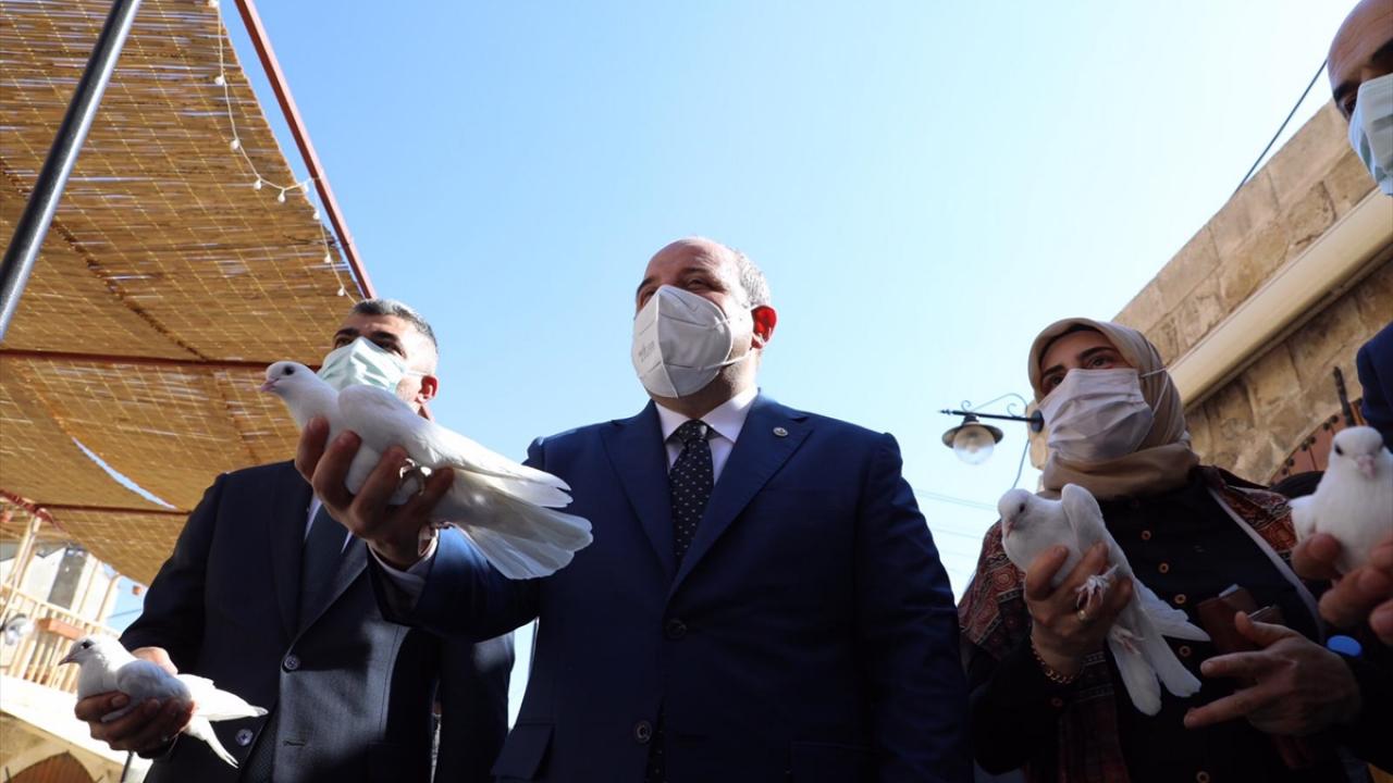 Bakan Varank, ziyaret sırasında kendisine verilen güvercini uçurdu.