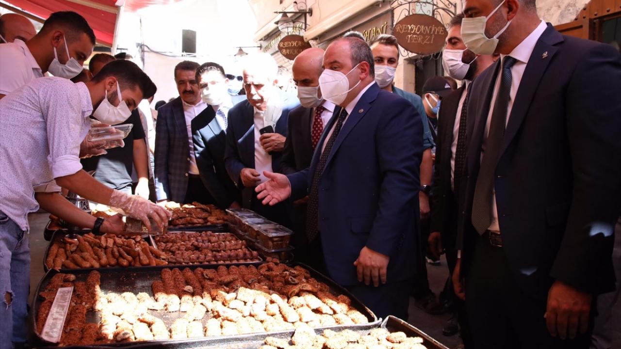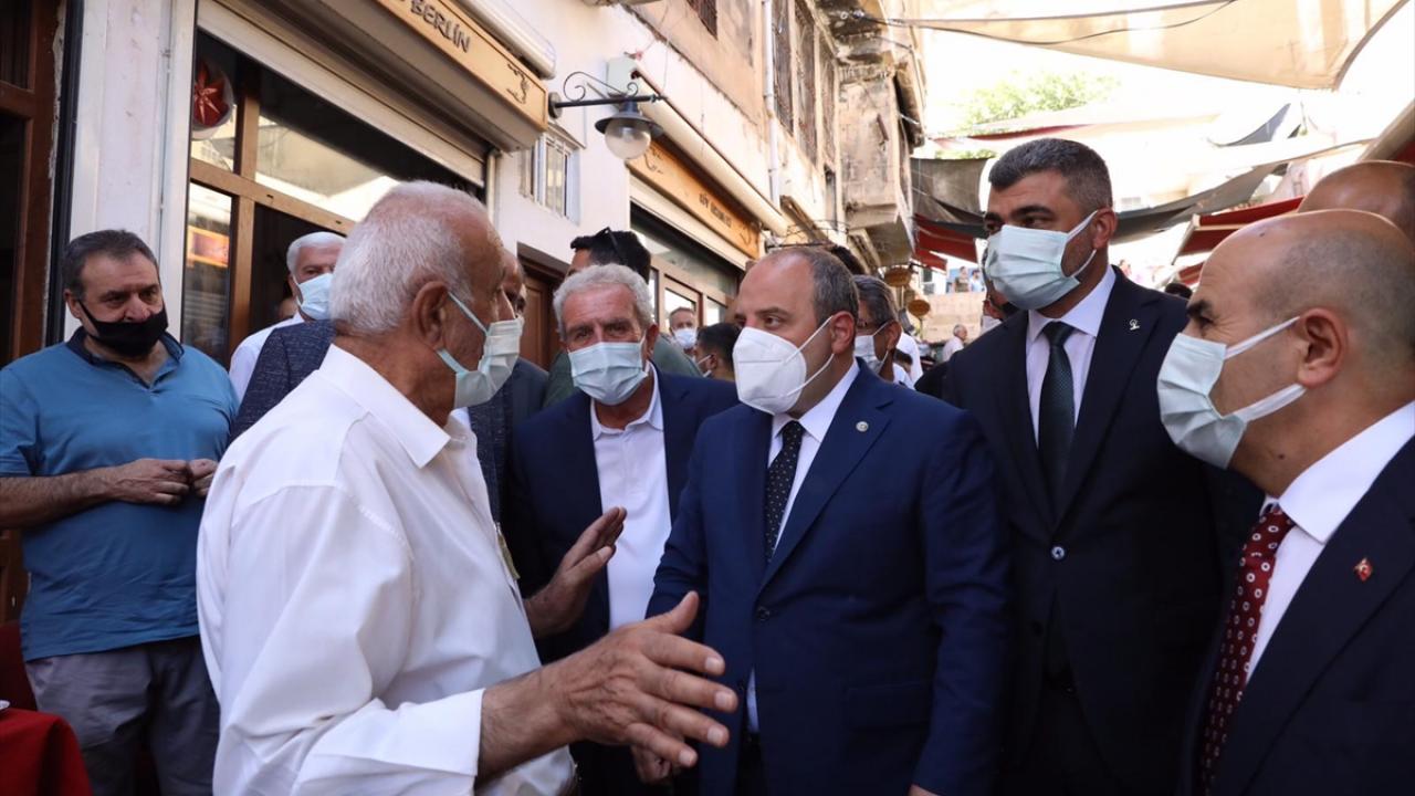 Bakanlığın CMDP kapsamında DİKA aracılığıyla restore ettiği tarihi Hasan Ammar, Revaklı, Tellallar ve Bakırcılar çarşılarını gezen Varank, esnafla sohbet etti.